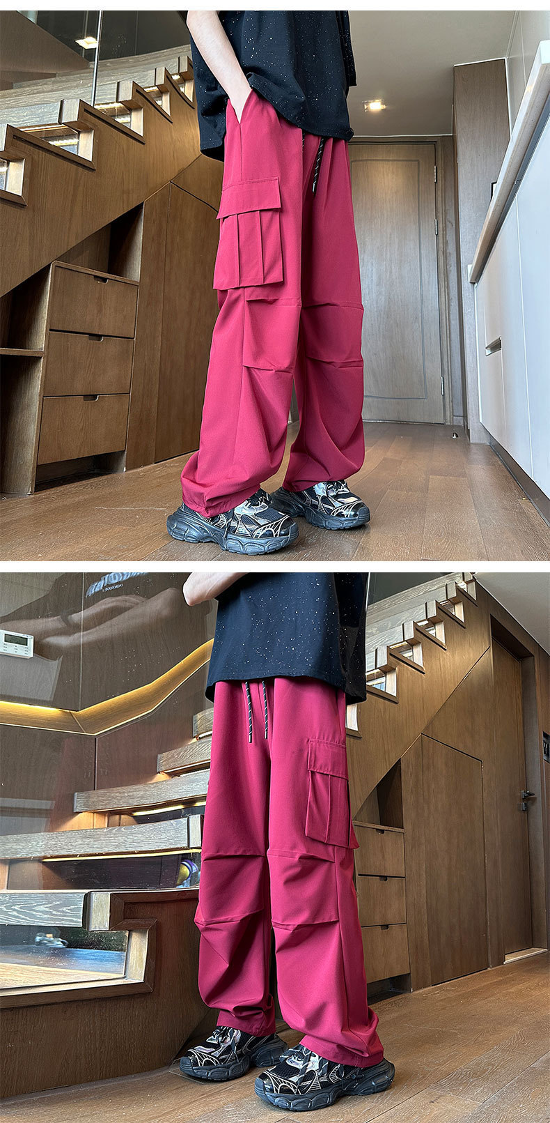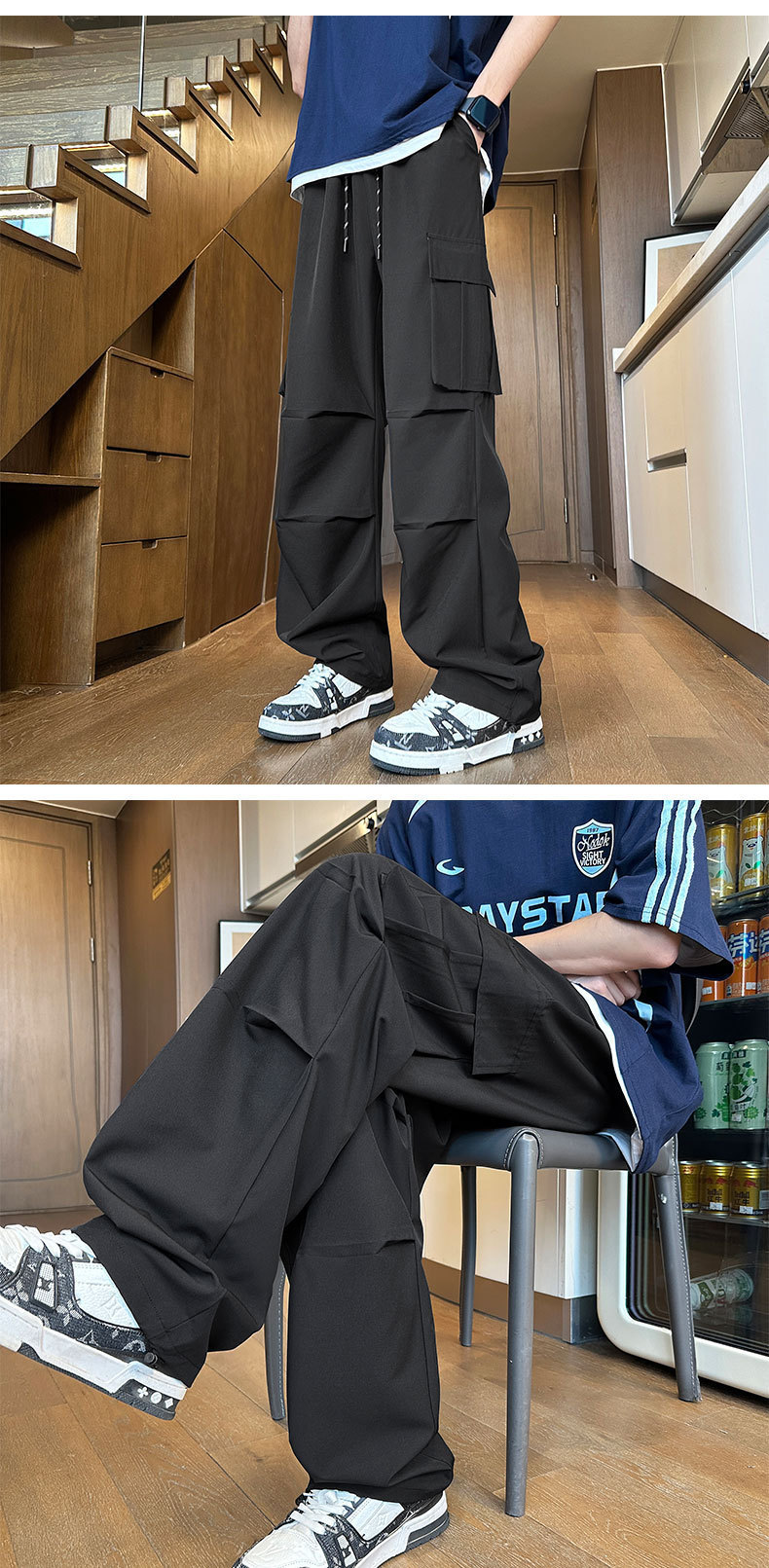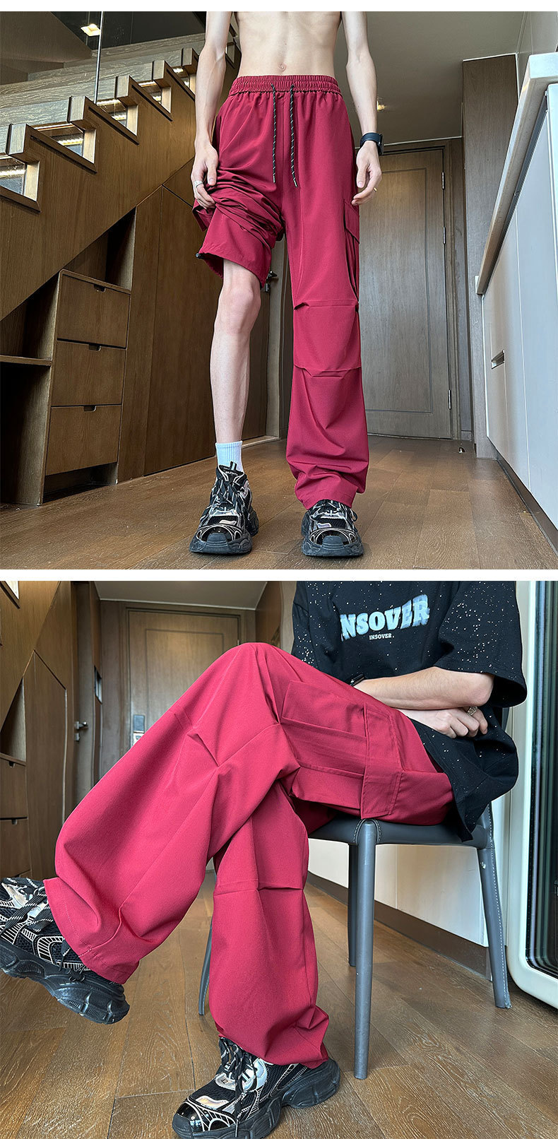 얇은 아이스 실크 캐주얼 바지 남자의 여름 느슨한 유행 작업복 캐주얼 바지 남자의 솔리드 컬러 스트레이트 빠른 건조 바지