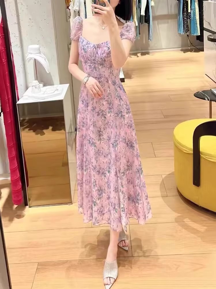 Xiaozhong 2024 여름 원피스 여성을위한 새로운 꽃 슬림 핏 허리 긴 조끼스토어 가기
