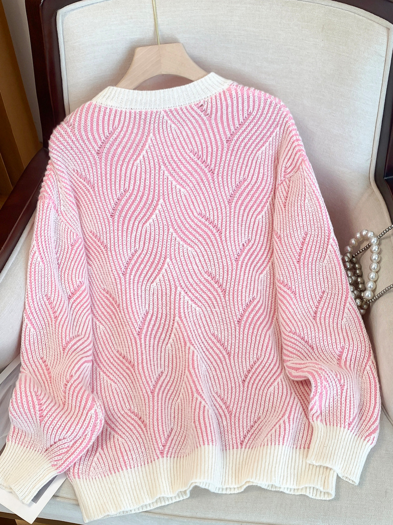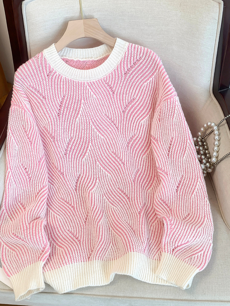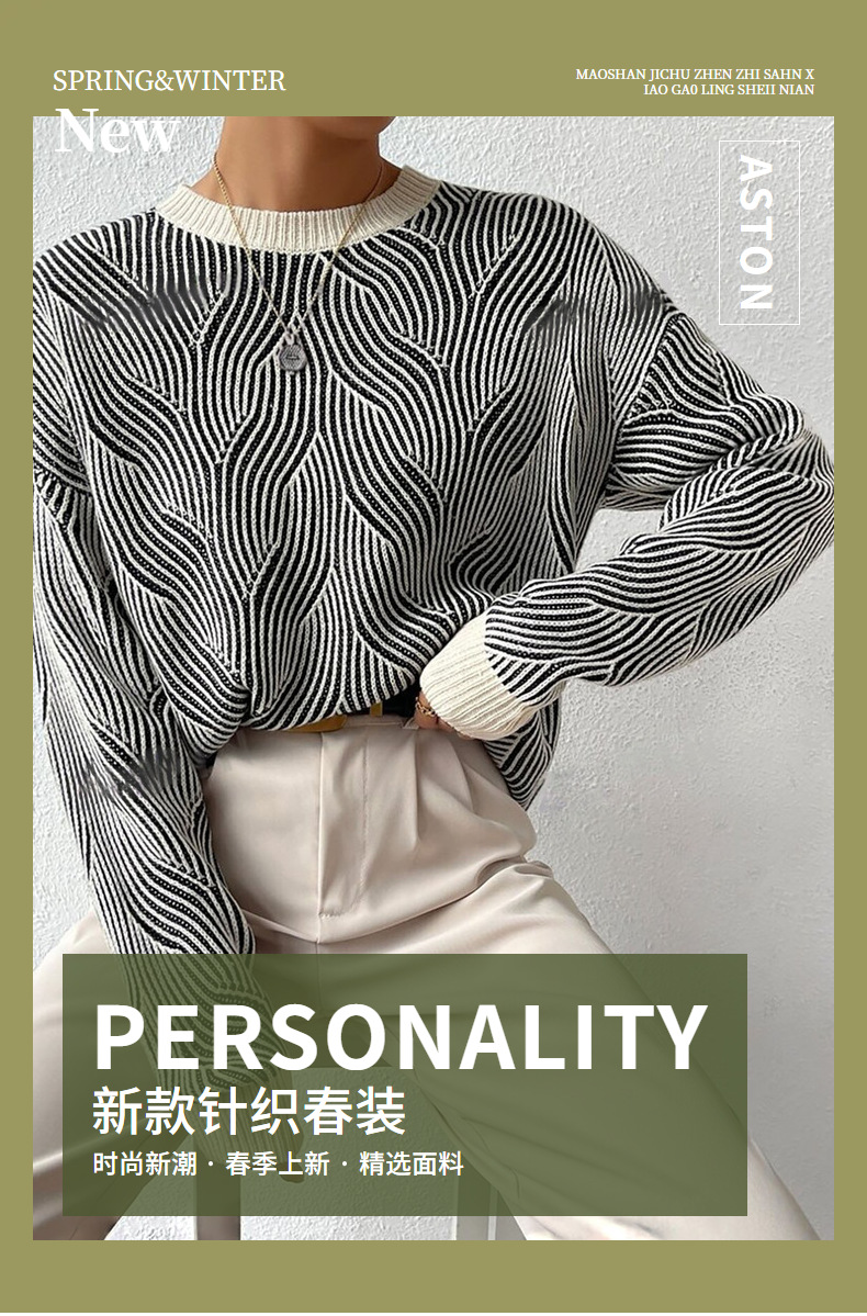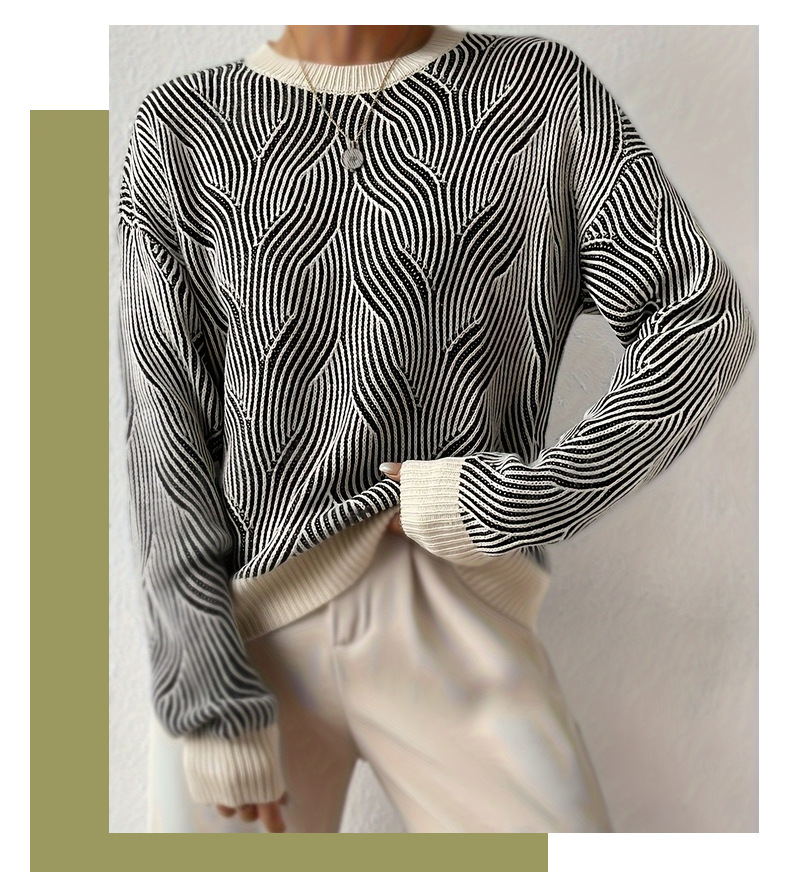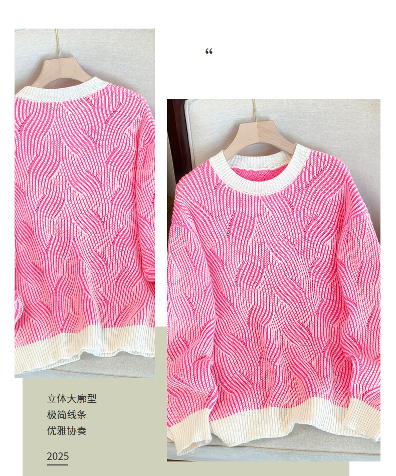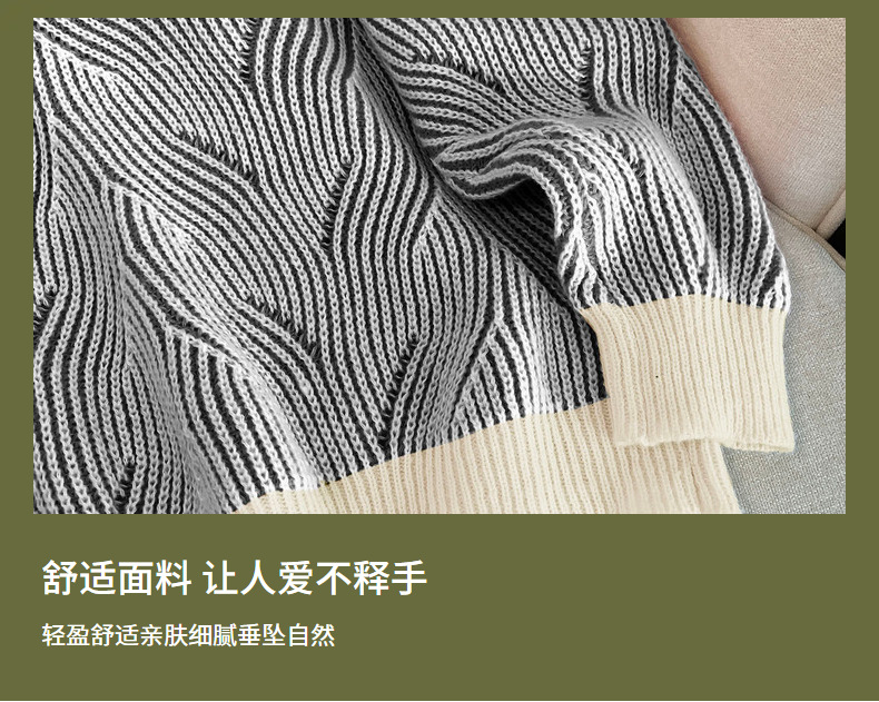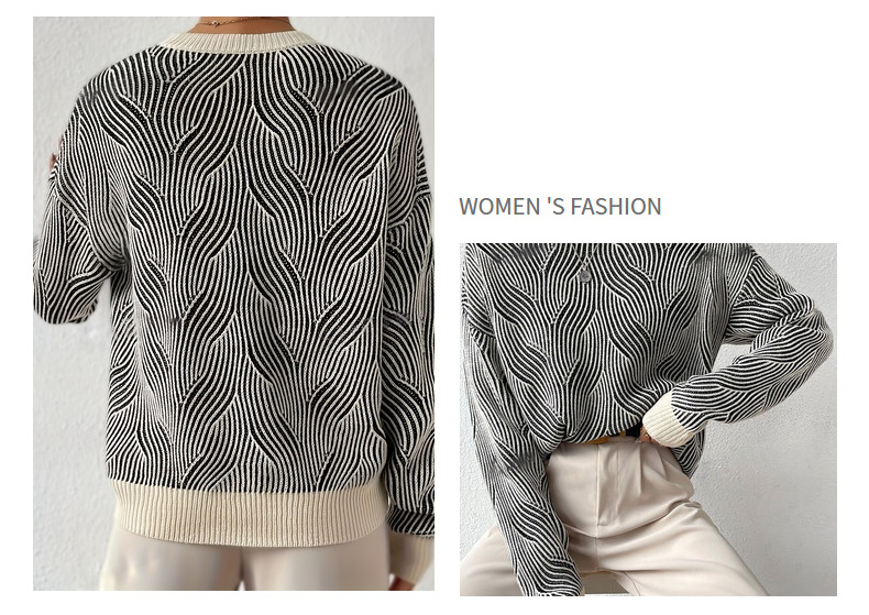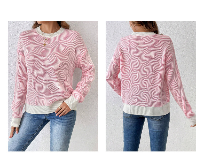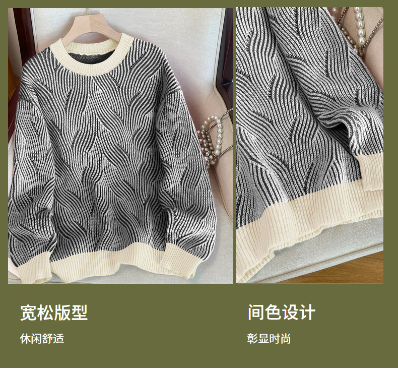크로스보더 니트 여성 의류 2025 봄, 가을 신상 라운드 넥 스트라이프 대비 색상 캐주얼 패션 다용도 니트 풀오버스토어 가기