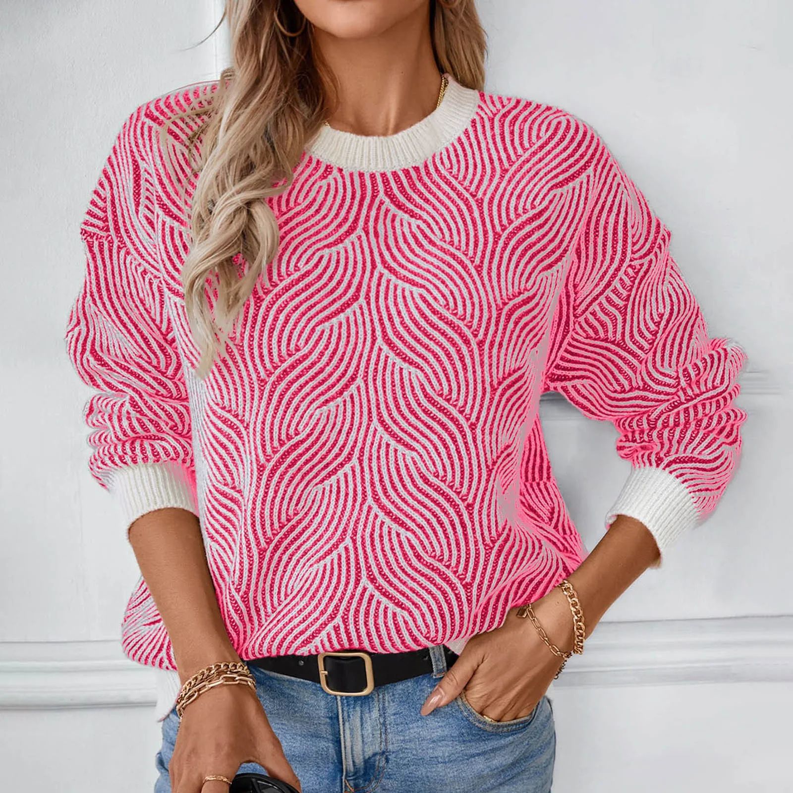 크로스보더 니트 여성 의류 2025 봄, 가을 신상 라운드 넥 스트라이프 대비 색상 캐주얼 패션 다용도 니트 풀오버