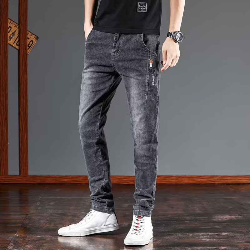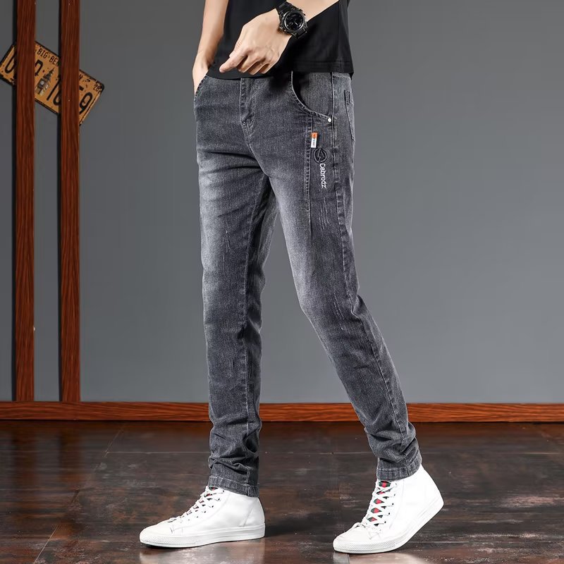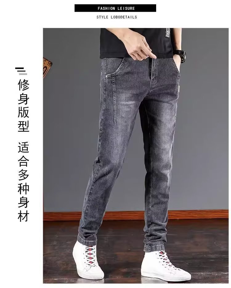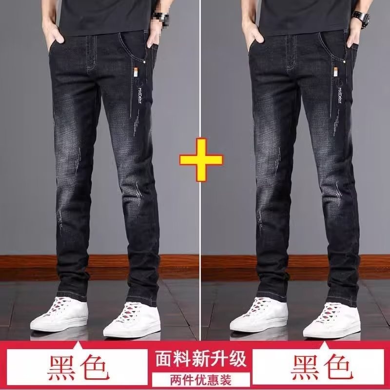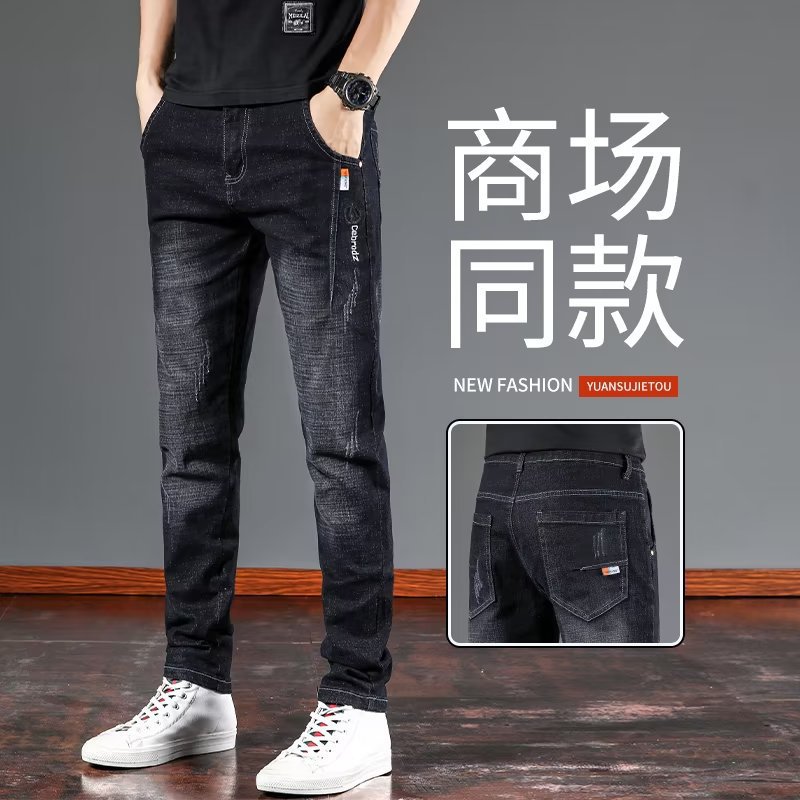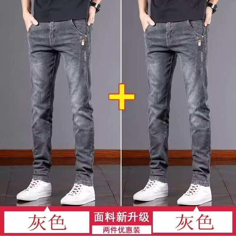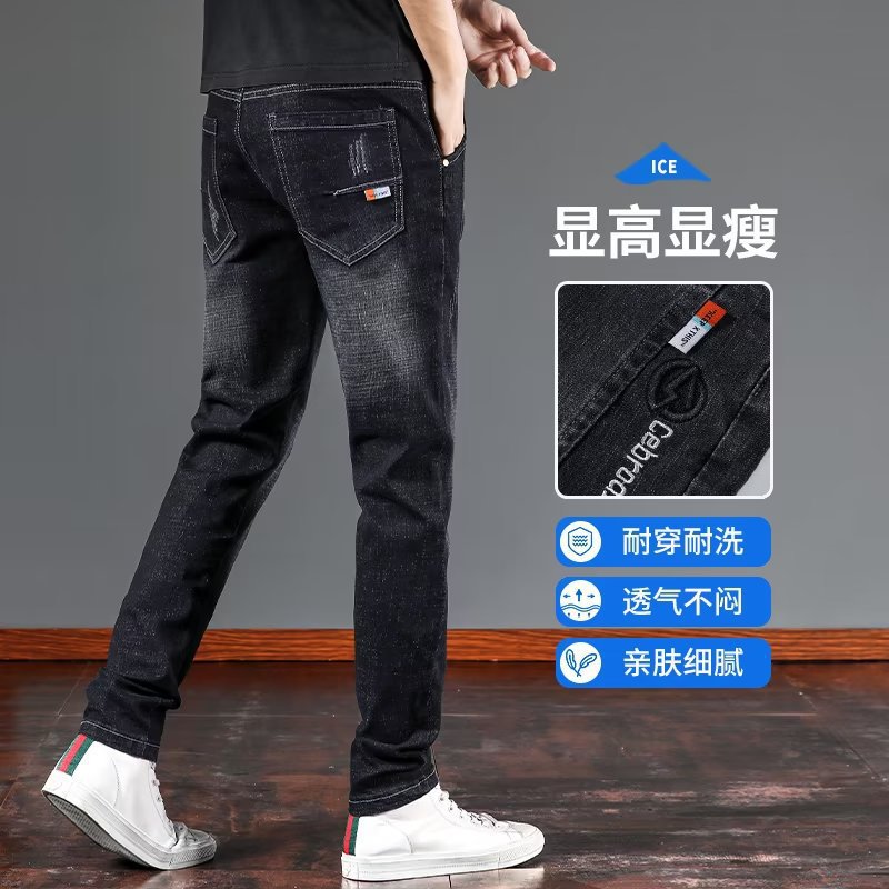 스트레치 청바지 남자 여름 슬림 핏 스트레이트 바지 새로운 한국 스타일 패셔너블 캐주얼 올 매치 롱 바지 남자 발스토어 가기