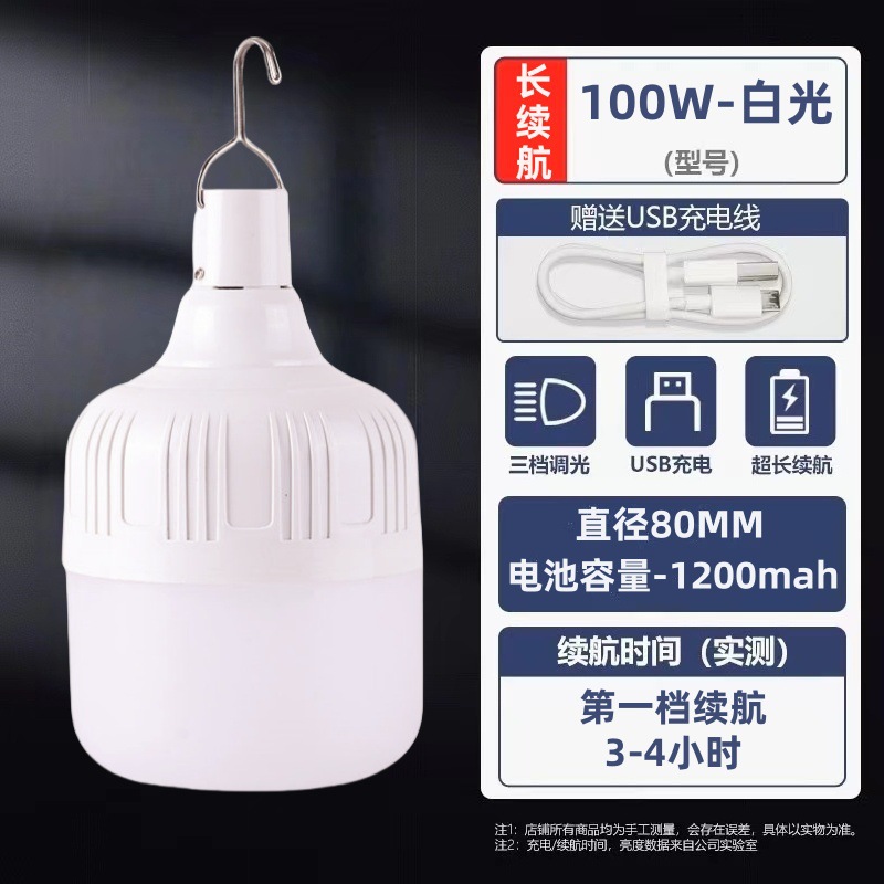 노점 야시장 램프 플러그를 뽑은 야외 특수 비상 램프 밝은 LED 램프 매우 긴 배터리 수명 충전식 조명 전구