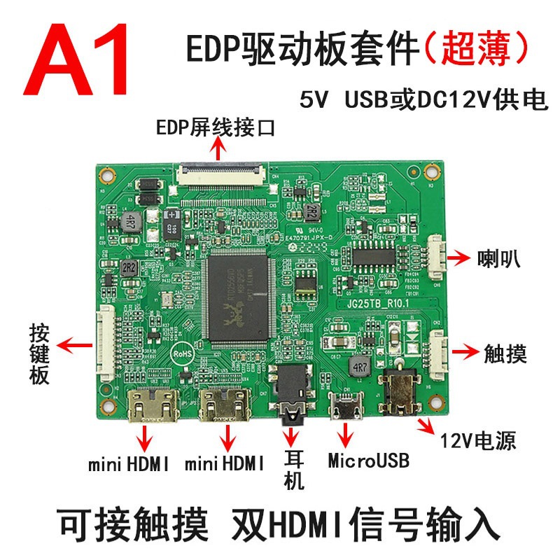 듀얼 HDMI 13.3 15.6 인치 1080P 휴대용 DIY 디스플레이 EDP 드라이버 보드 5V USB 터치 HDR