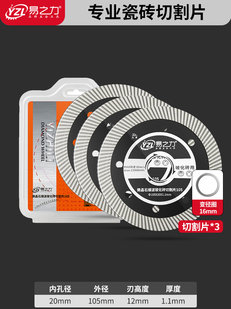 • 전문 세라믹 타일 커팅 디스크 [건식 커팅, 가장자리 깨짐 없음, 도자기 깨짐 없음] 3개 + 무료 감소 링