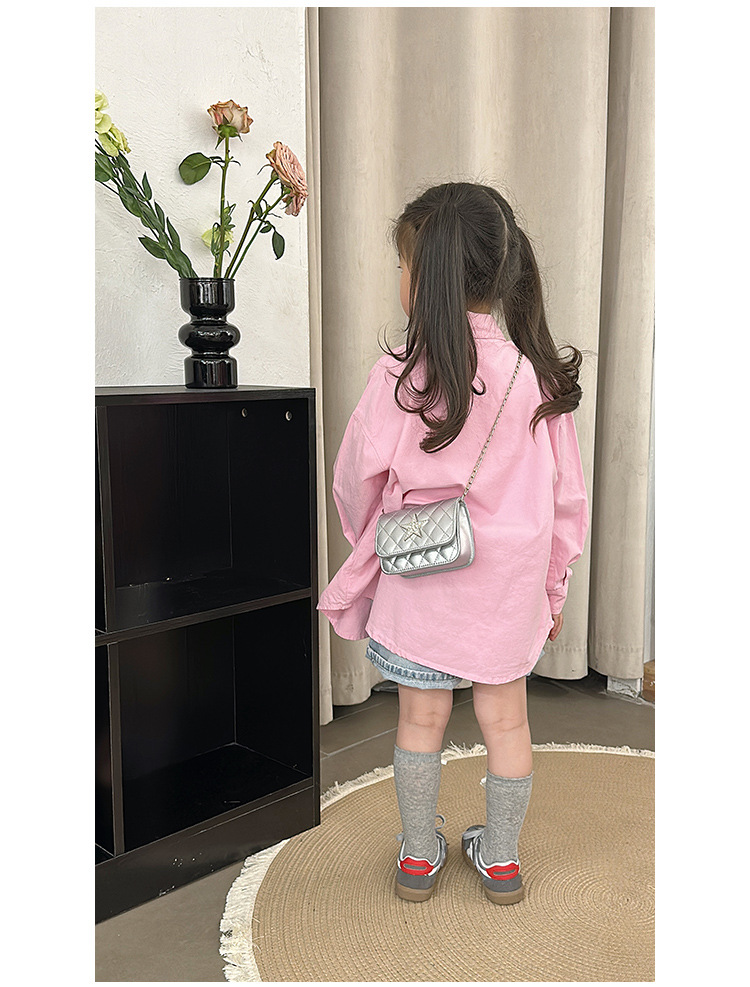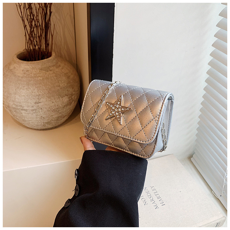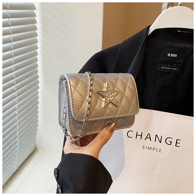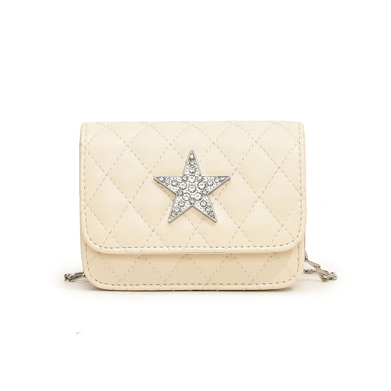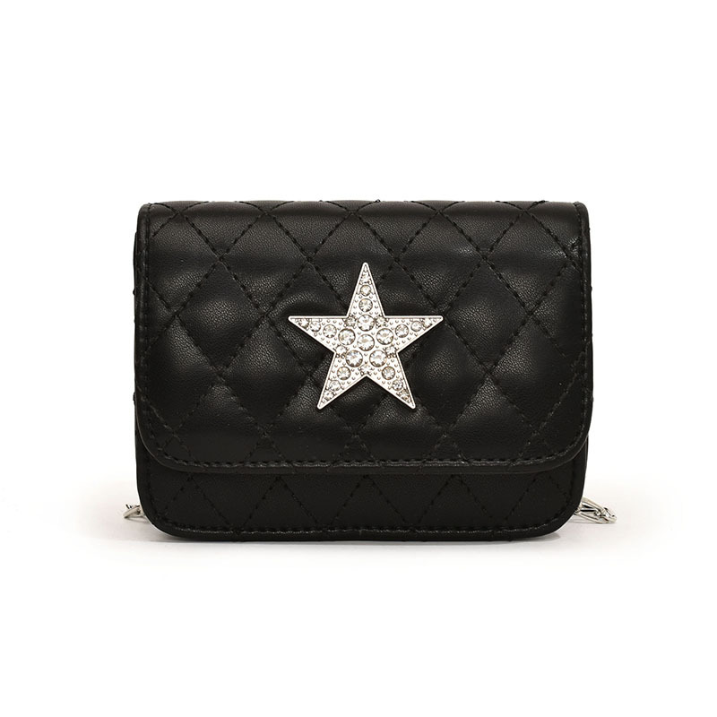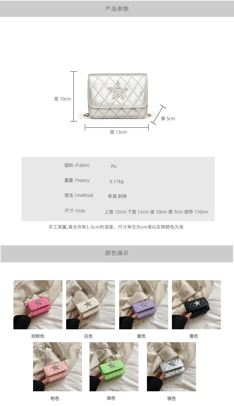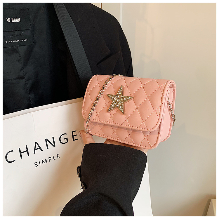 패션 어린이 다이아몬드 스타 가방 2024 단색 질감 체인 소녀의 어깨 가방 크로스 바디 동전 지갑스토어 가기