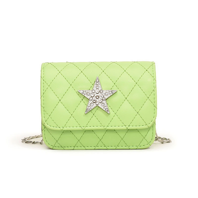 패션 어린이 다이아몬드 스타 가방 2024 단색 질감 체인 소녀의 어깨 가방 크로스 바디 동전 지갑
