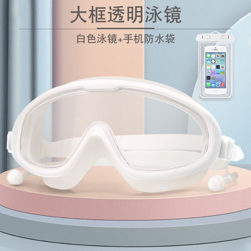 • 수영 고글 + 방수 가방 - 대형 프레임 - 투명 흰색