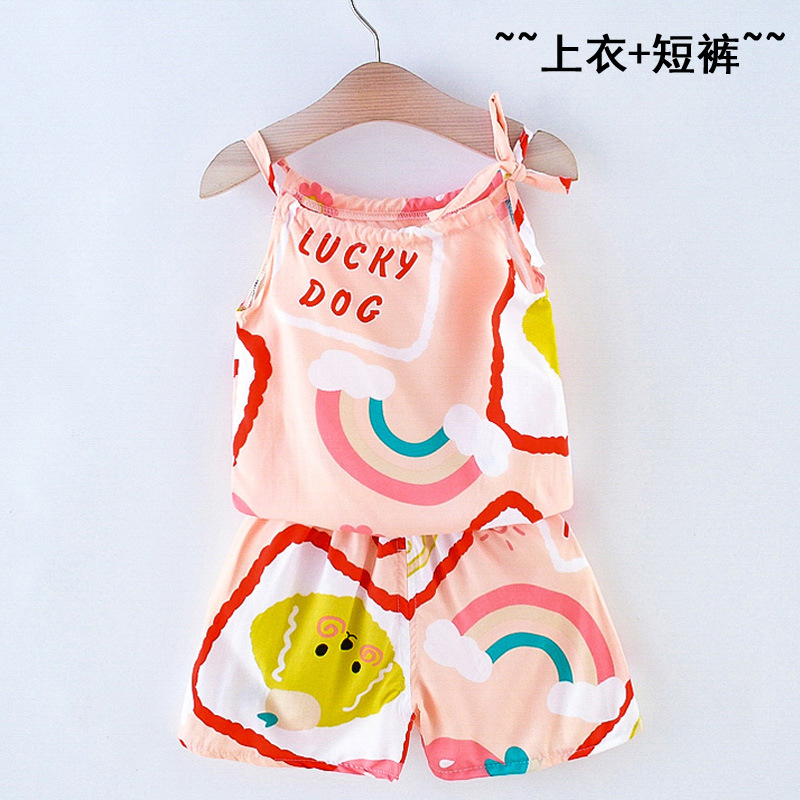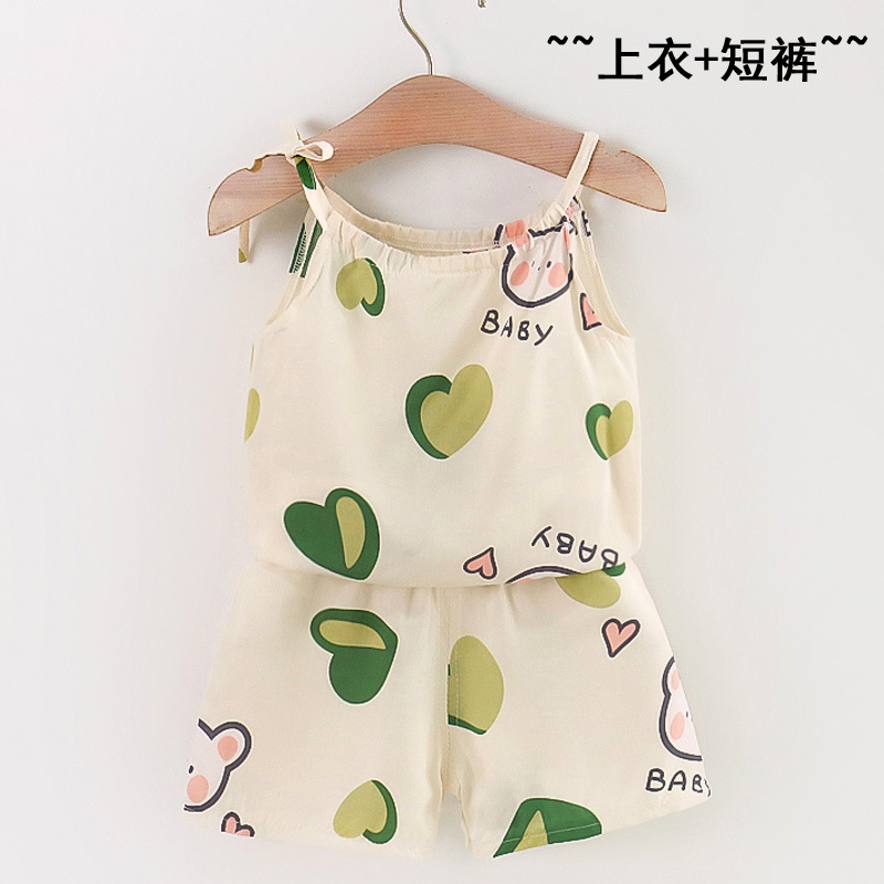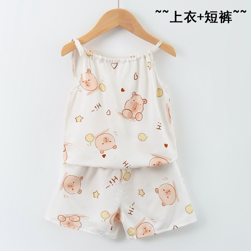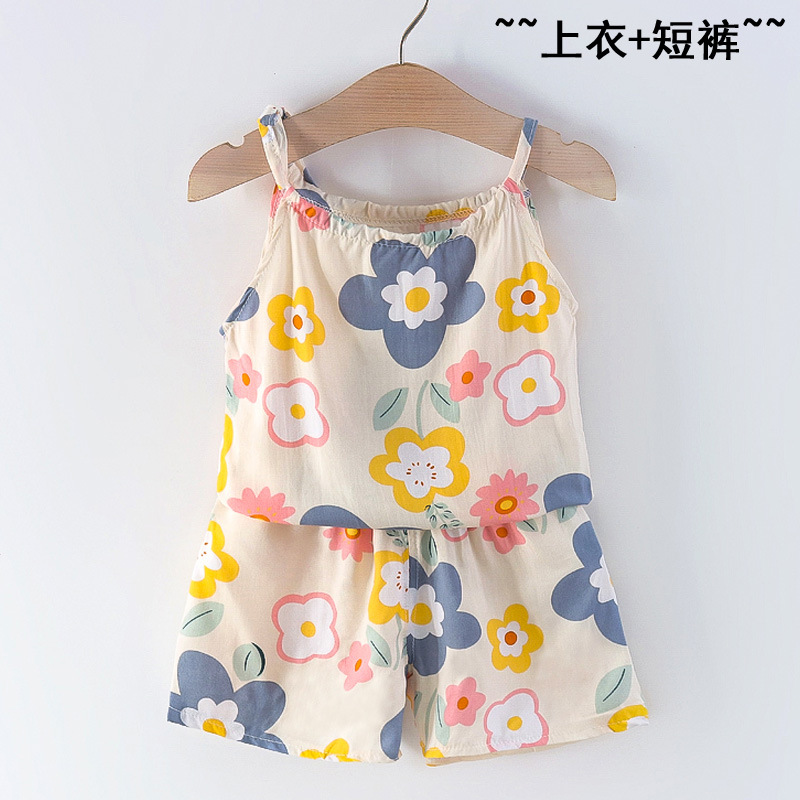 면 실크 어린이 얇은 여름 소녀 면 실크 에어컨 홈 옷 아기 어린이 슬링 반바지 세트 인공 면화스토어 가기