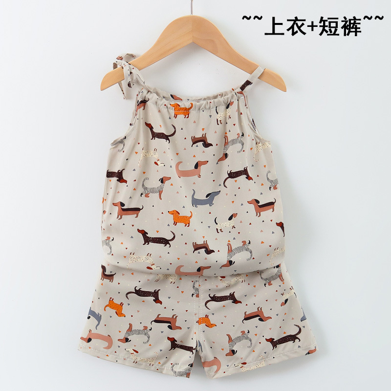 면 실크 어린이 얇은 여름 소녀 면 실크 에어컨 홈 옷 아기 어린이 슬링 반바지 세트 인공 면화