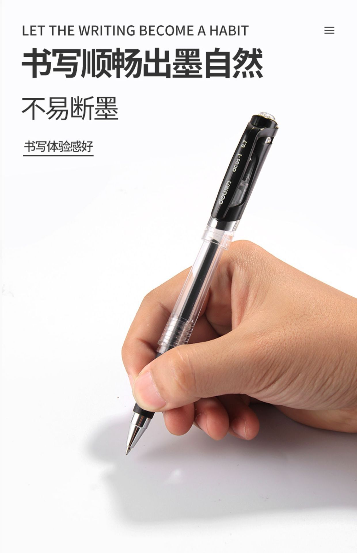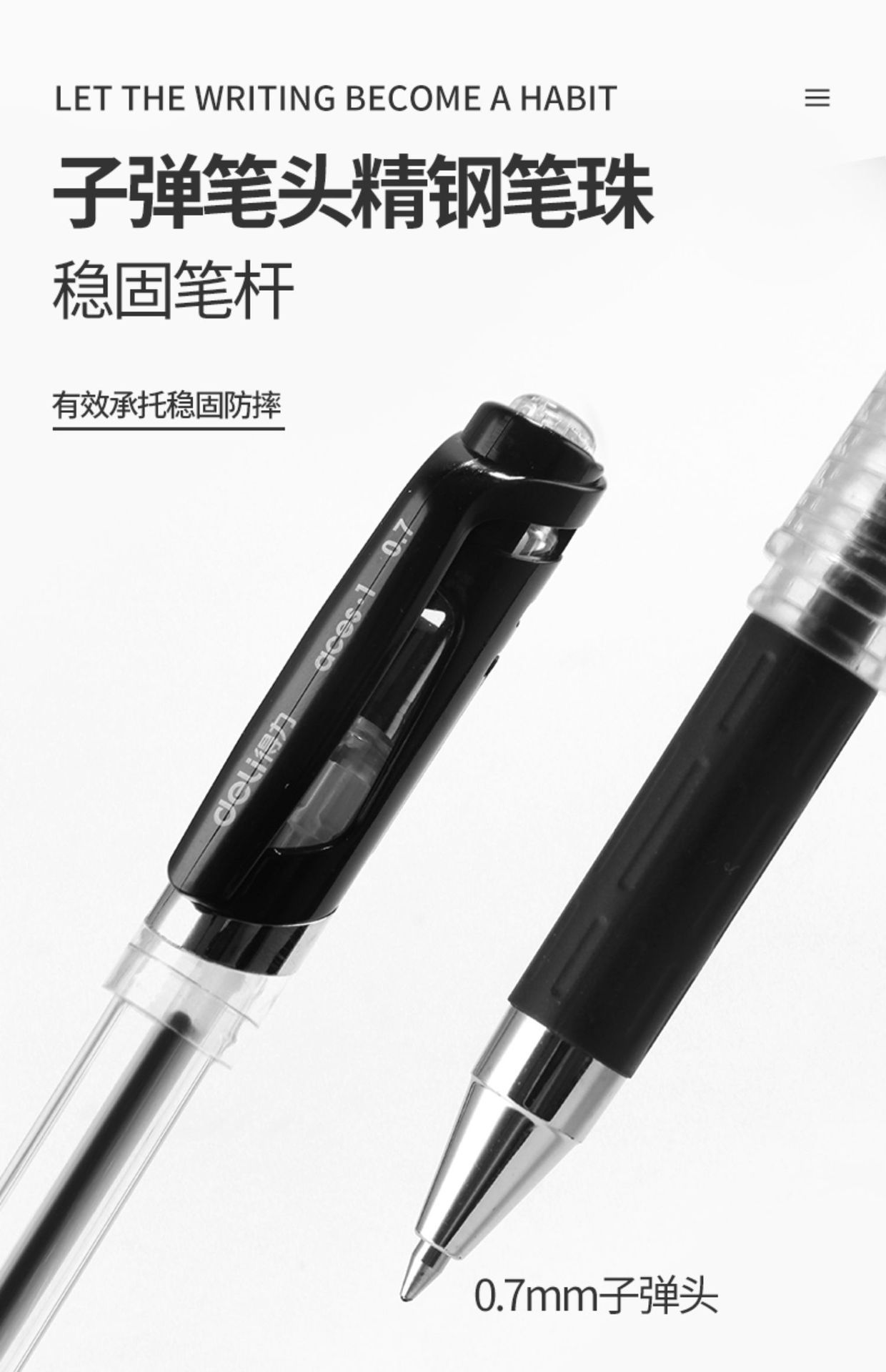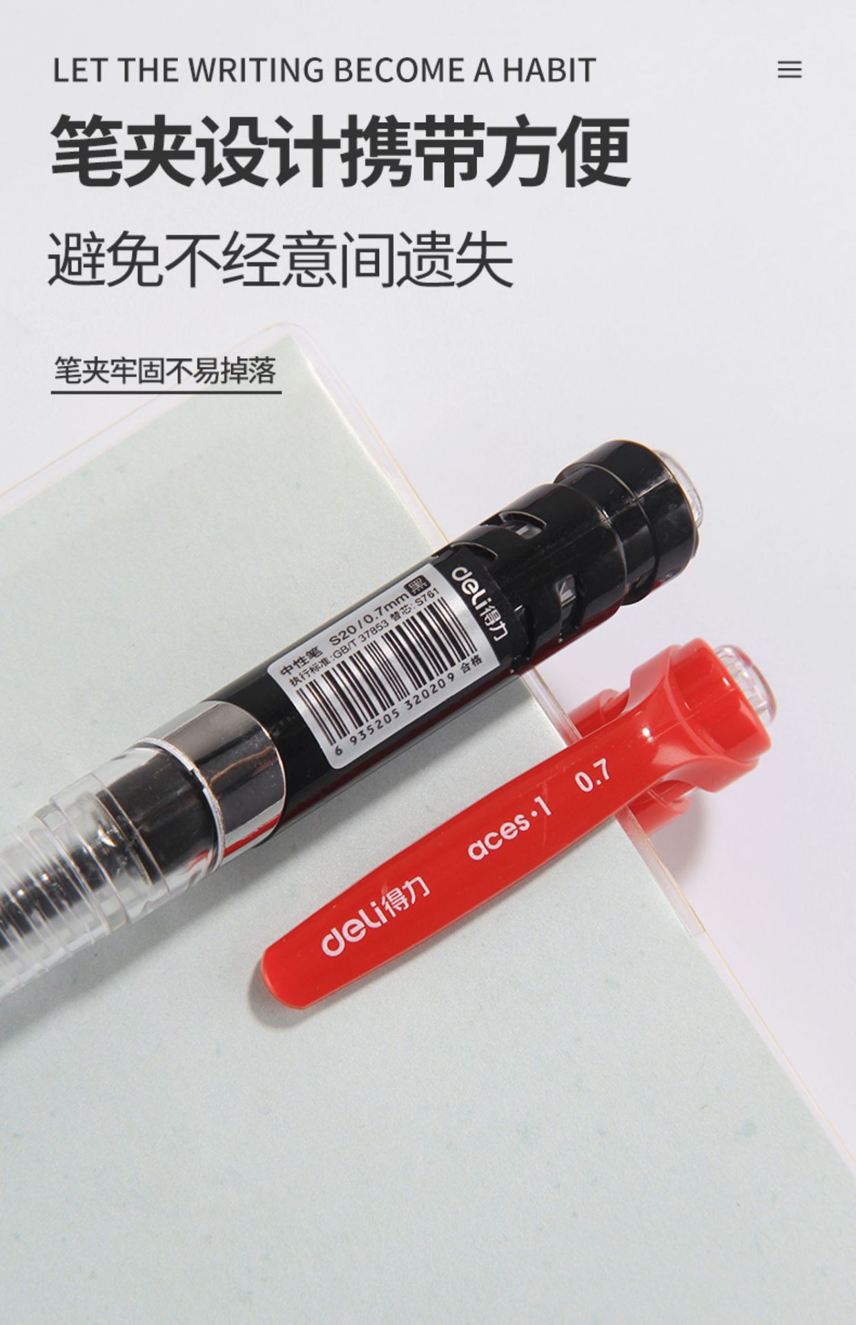 델리 중립 펜 S20 블랙 0.7mm 투명 막대 수성 펜 사인 펜 두꺼운 머리 회의 사무실 용품 문구스토어 가기