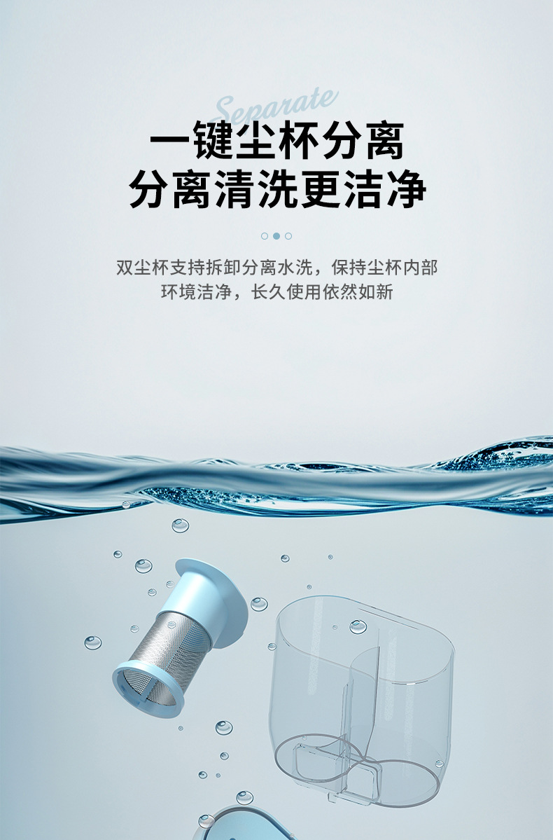 7.双杯外观设计,一个储存灰尘,一个过滤空气