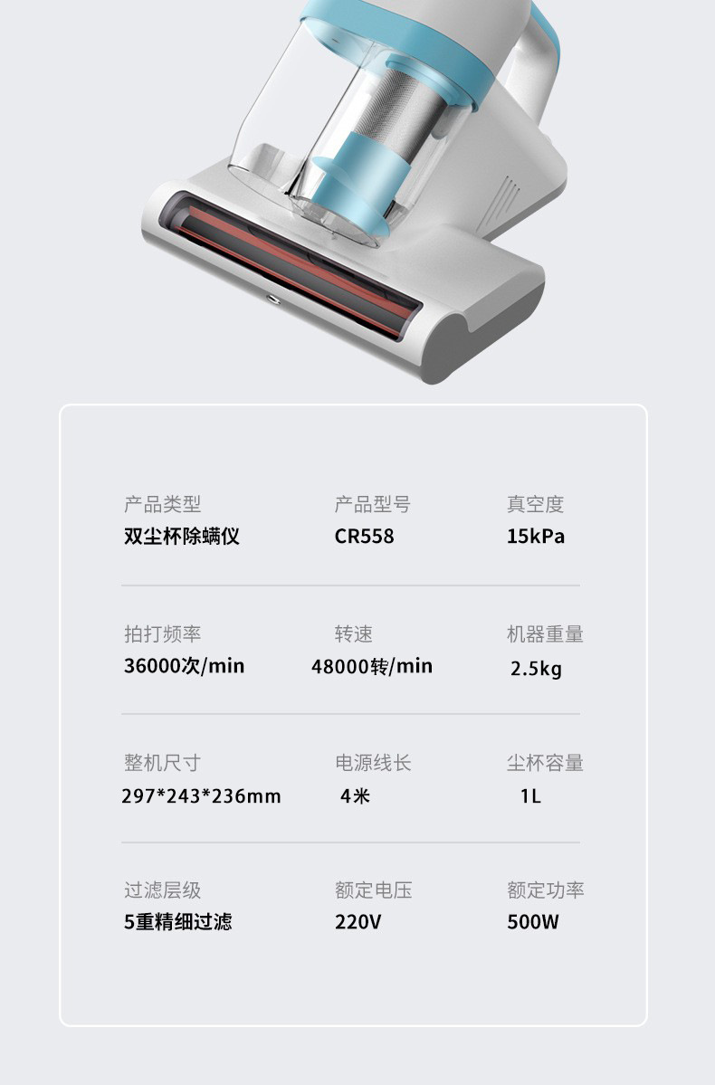 功率:500w 尘杯容量:1L
