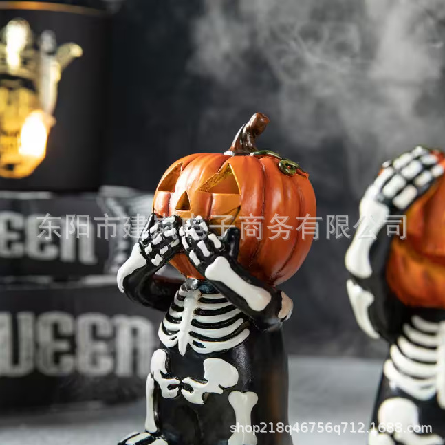 국경을 넘는 새로운 할로윈은 두개골 수지 공예 장식품 홈 장식 작은 선물을 보지 않거나 말하지 않습니다.스토어 가기