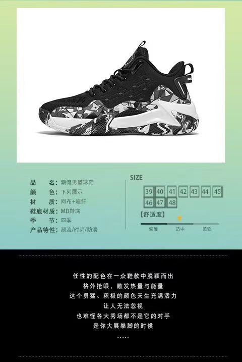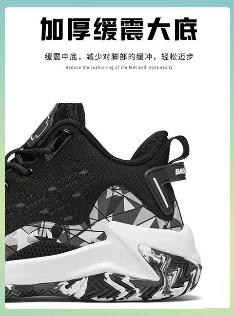 2024 새로운 플러스 사이즈 농구 신발 십대 학생 통기성 러닝 슈즈 패션 남성 운동화 블랙 컬러