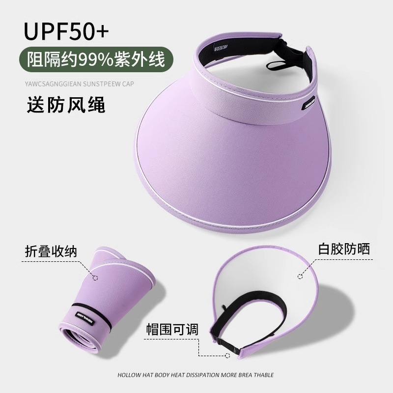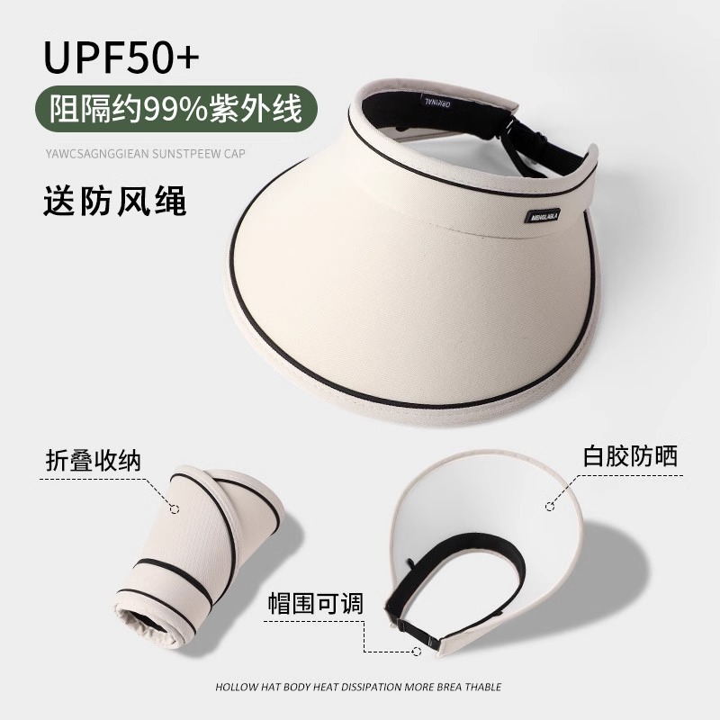 UPF50 선 스크린 모자 봄과 여름 2024 새로운 여성 빅 브림 안티-UV 빈 탑 태양 모자 햇살스토어 가기