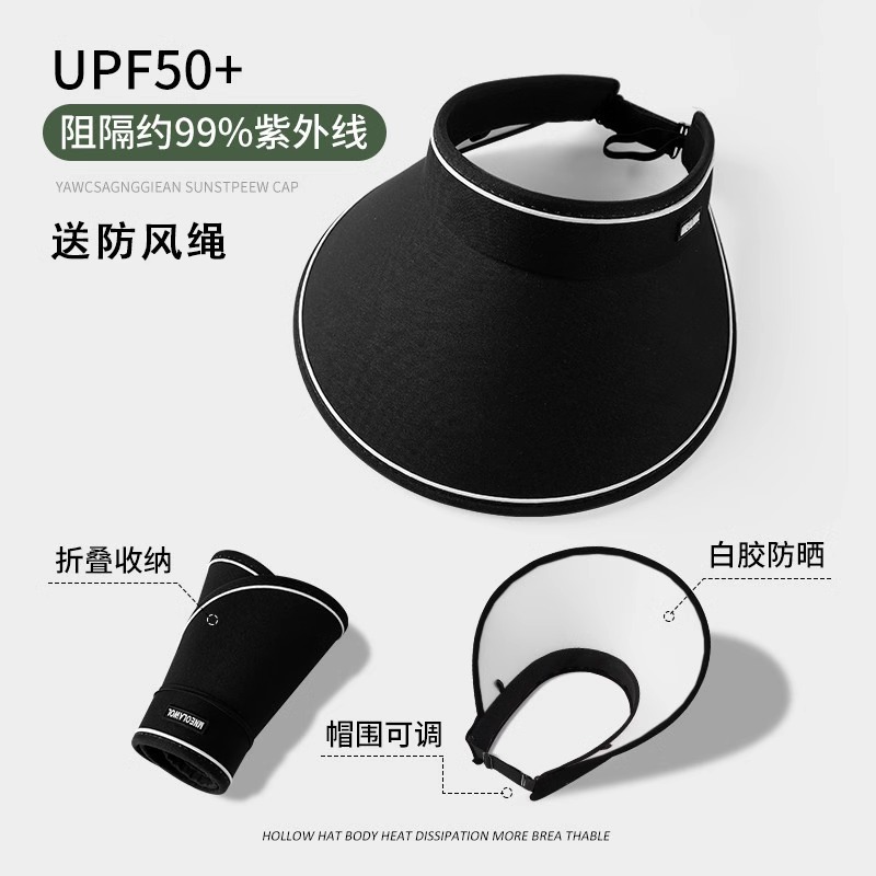 UPF50 선 스크린 모자 봄과 여름 2024 새로운 여성 빅 브림 안티-UV 빈 탑 태양 모자 햇살