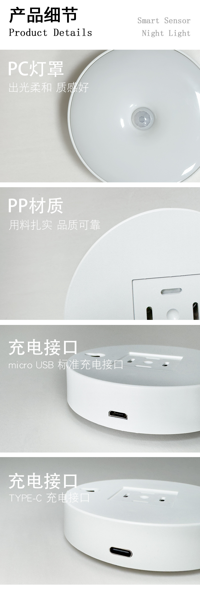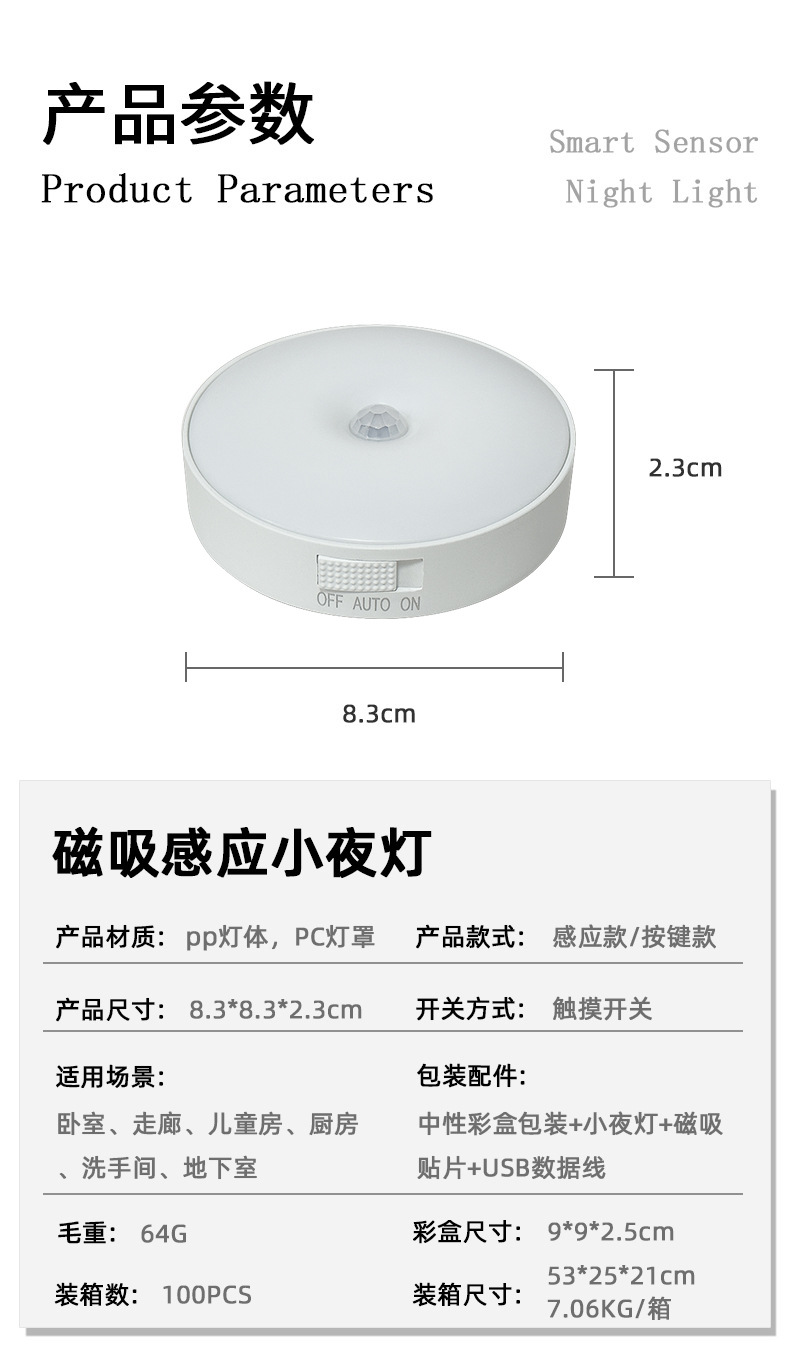 LED 인체 감지등 침실 야간등 침대 옆 옷장 감지등 스마트 자석 충전 야간등 분위기등