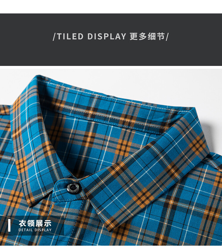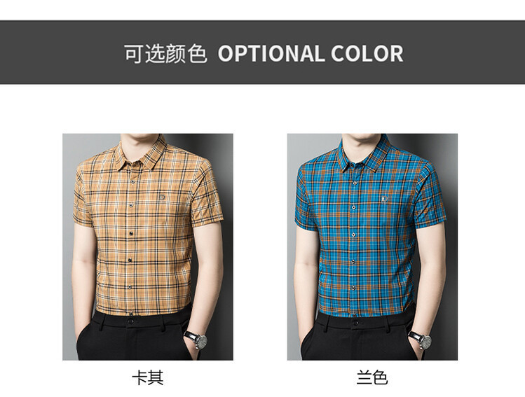 2024 년 여름 새로운 캐주얼 셔츠 남성용 반팔 옷깃 격자 중년 비 다림질 높은 스트레치 남성용 셔츠스토어 가기