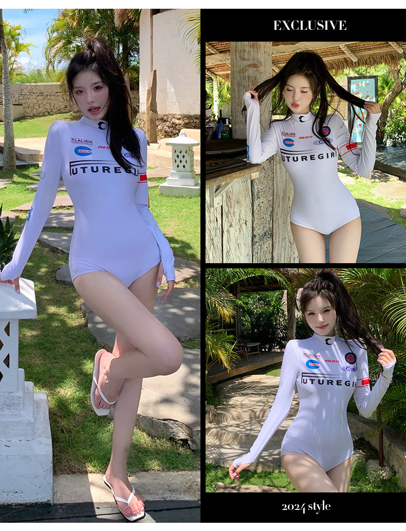 순수한 욕망 원피스 수영복 여성용 긴팔 보수적 인 작은 가슴이 모여 살짝 덮는 슬리밍 비치 다이빙 서퍼 휴가 수영복스토어 가기