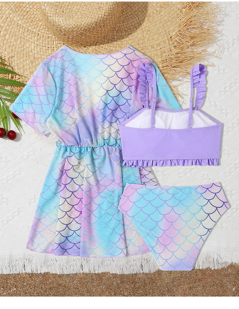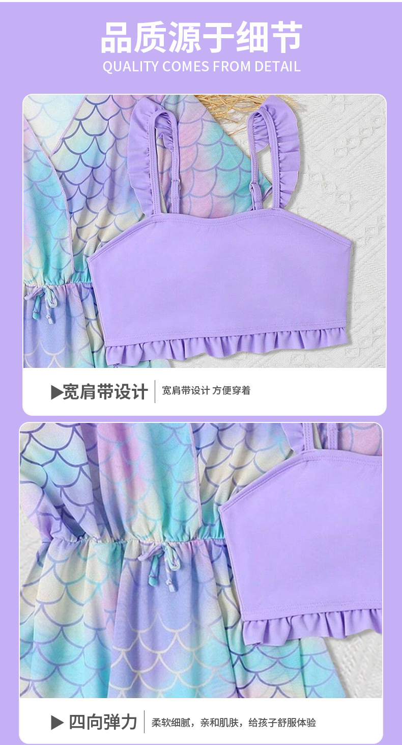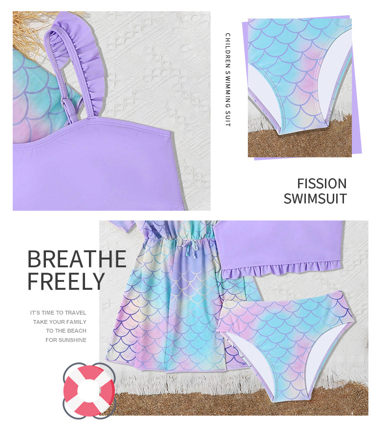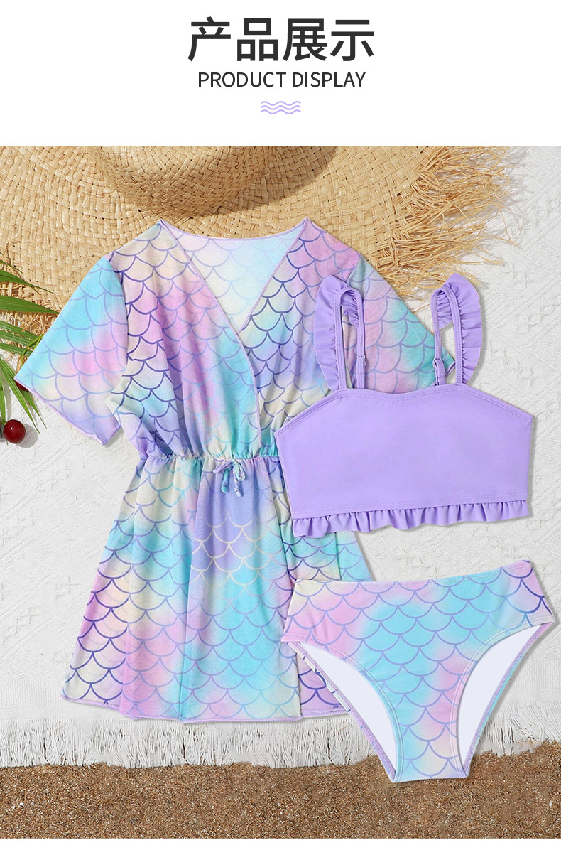 2025년 신형 아동 수영복 3피스 여아 스플릿 수영복 커버업 중대형 아동 크로스보더 수영복 대외 무역