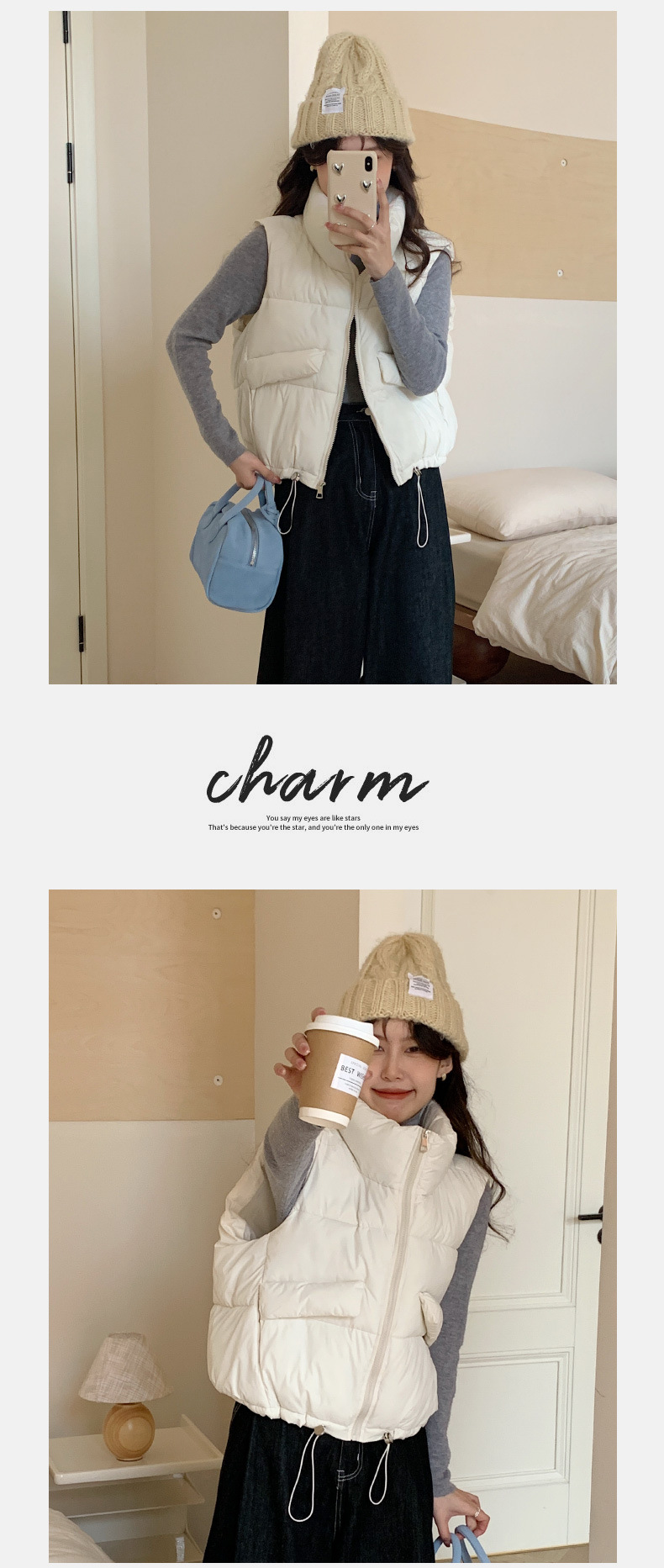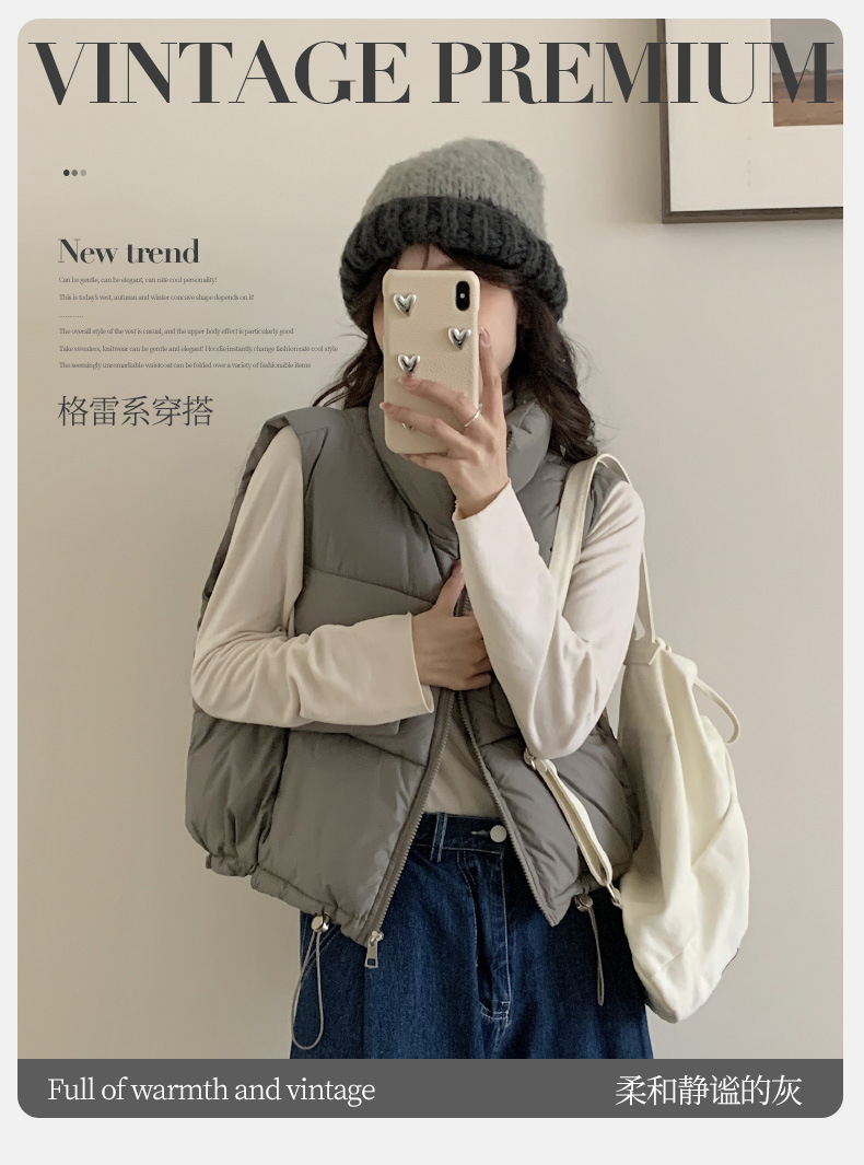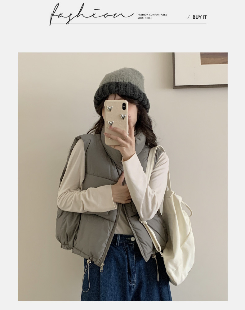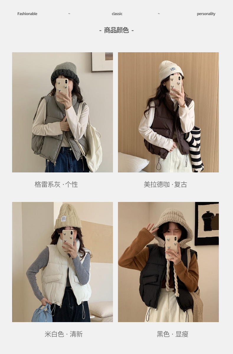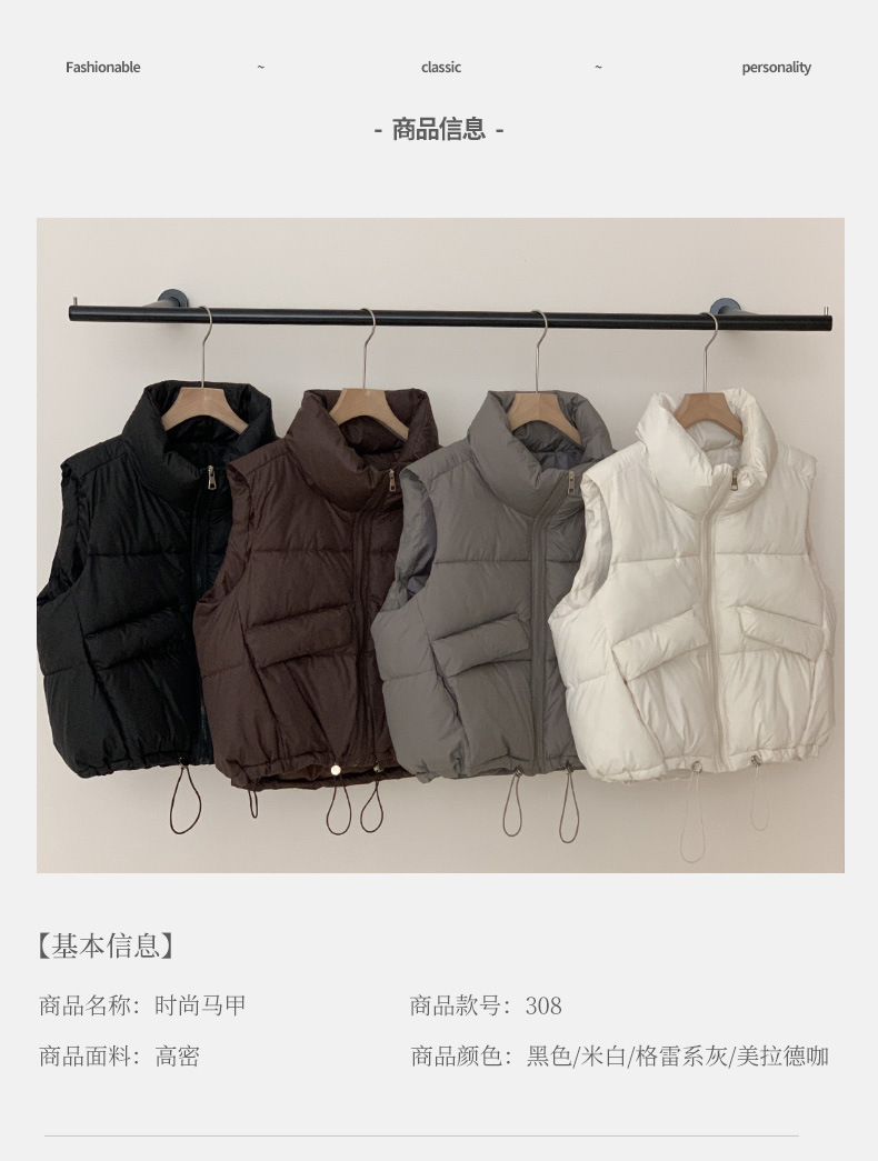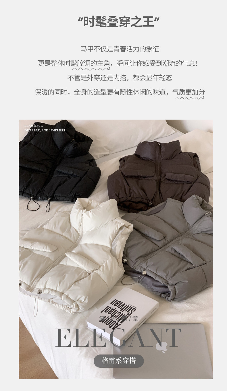 2024 년 새로운 유럽 겨울 면화 조끼 여성 스탠드 칼라 양복 조끼 짧은 따뜻한 조끼 스몰 사이즈 면봉 재킷 조끼 조수스토어 가기