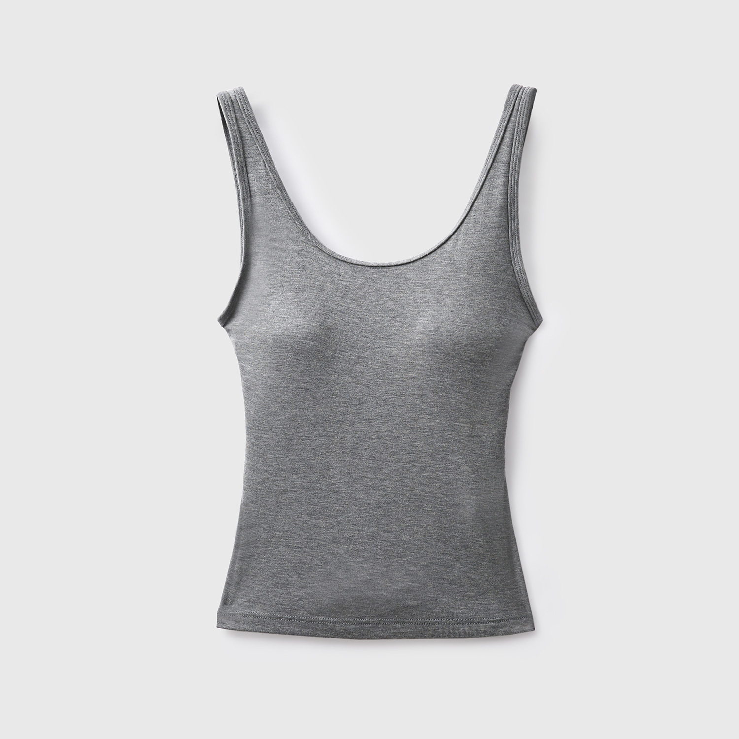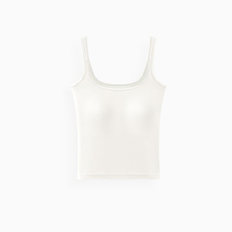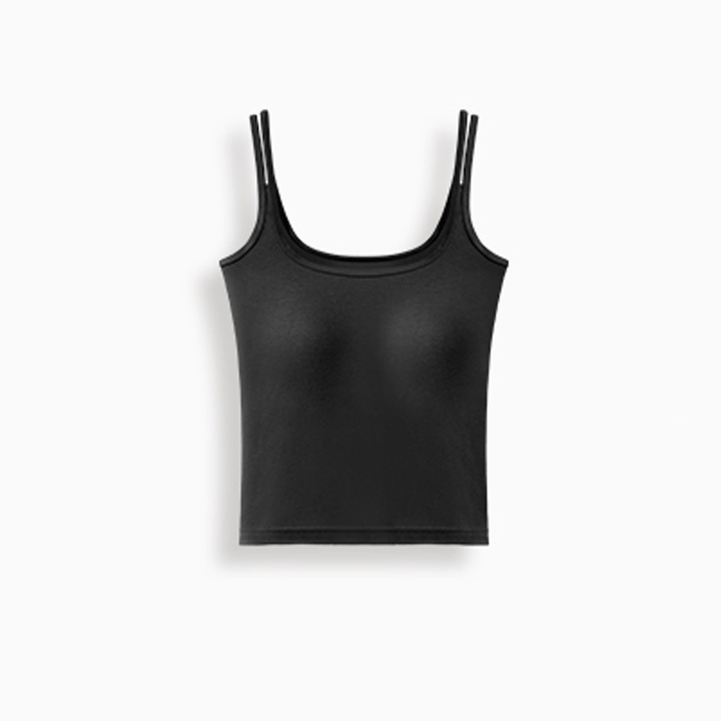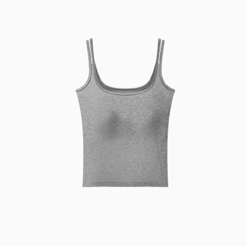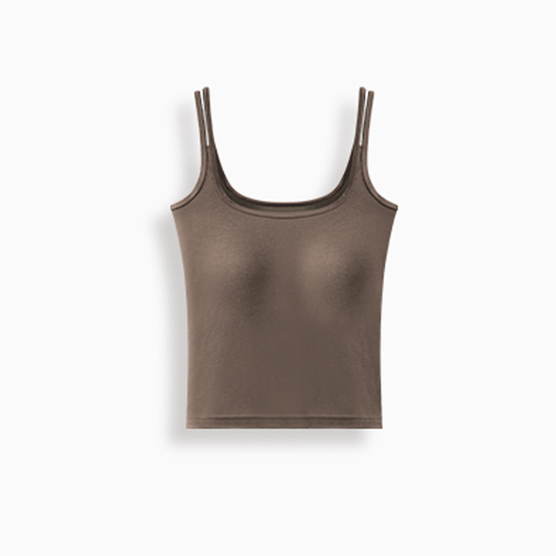 가을 겨울 얇은 이중 어깨끈 외출용 가슴 패드 내장 실크 조끼 여성용 편안한 이너웨어 민소매 탑스토어 가기