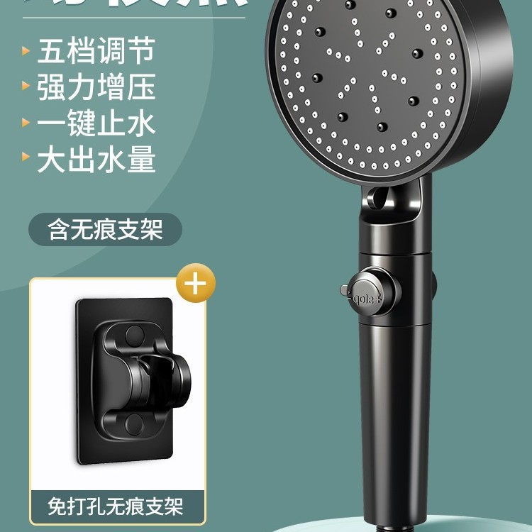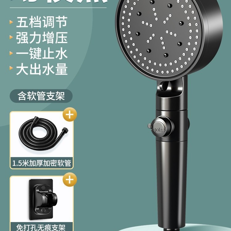 • 블랙 5 단 슈퍼 차저 샤워 1.5 m 암호화 호스 펀치 프리 브래킷