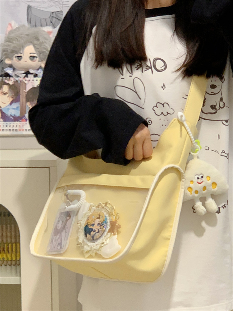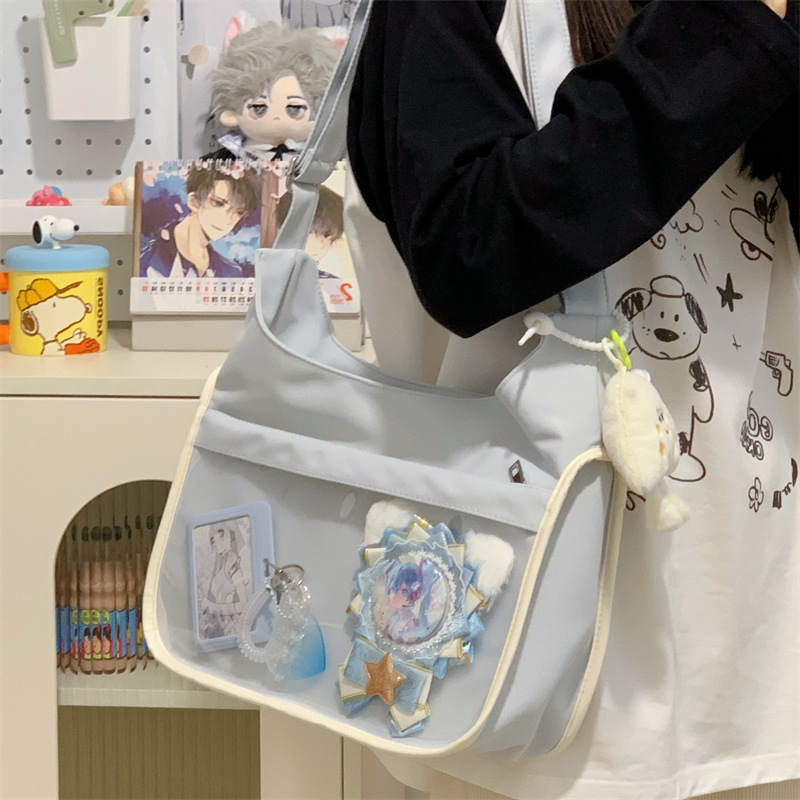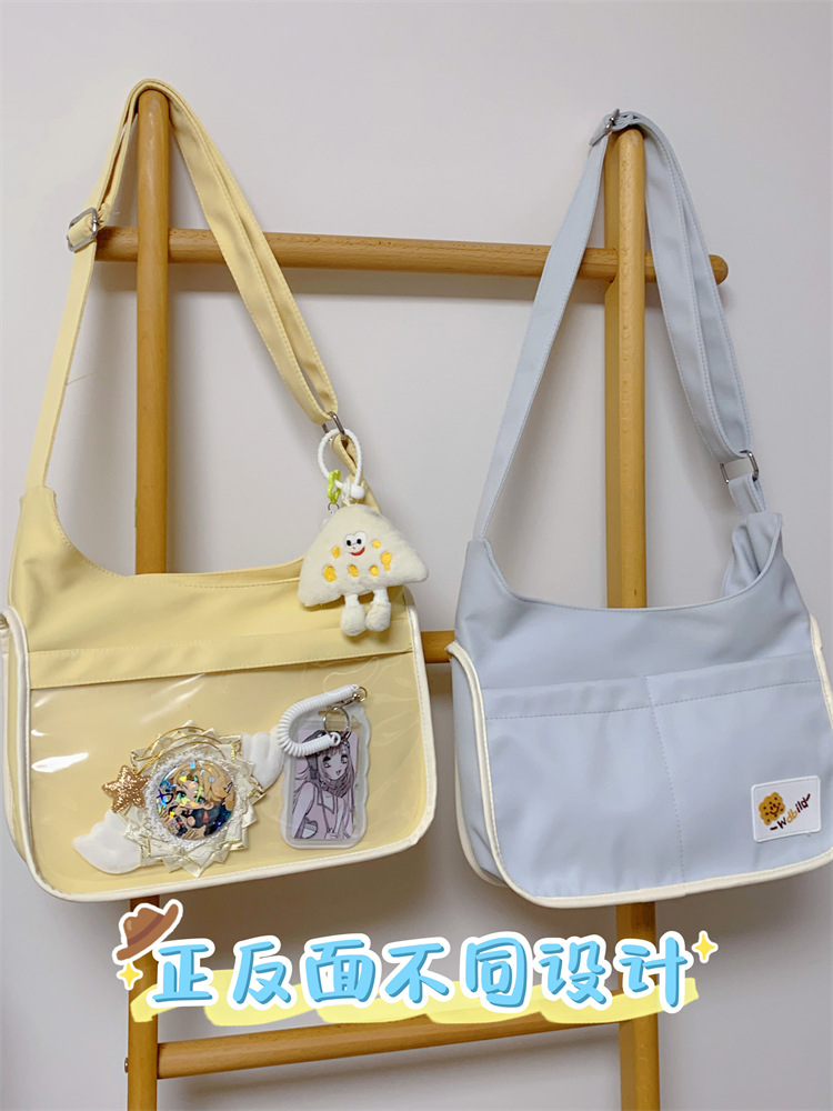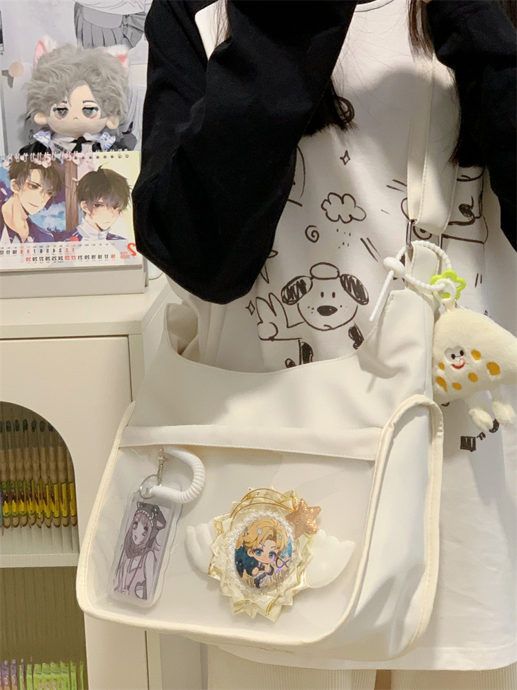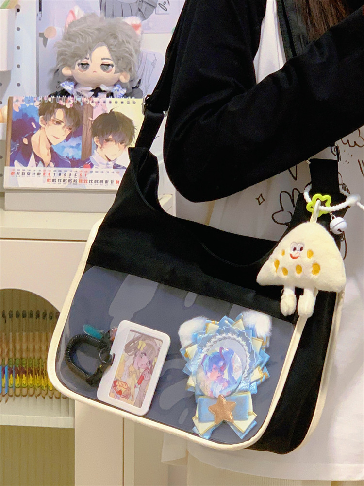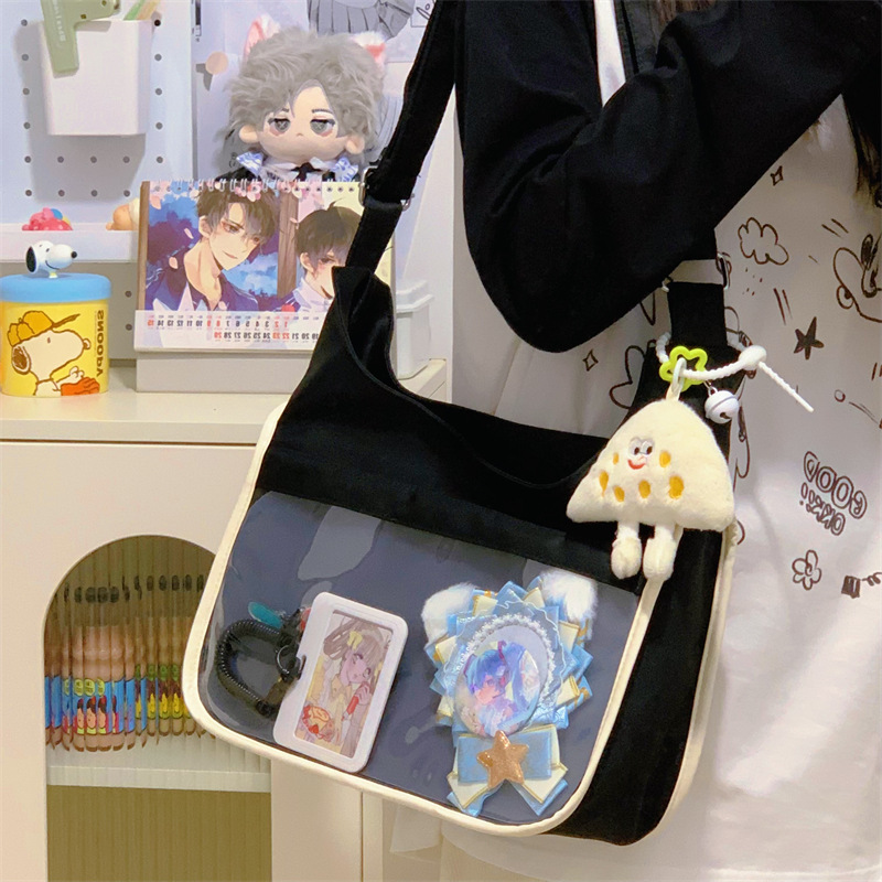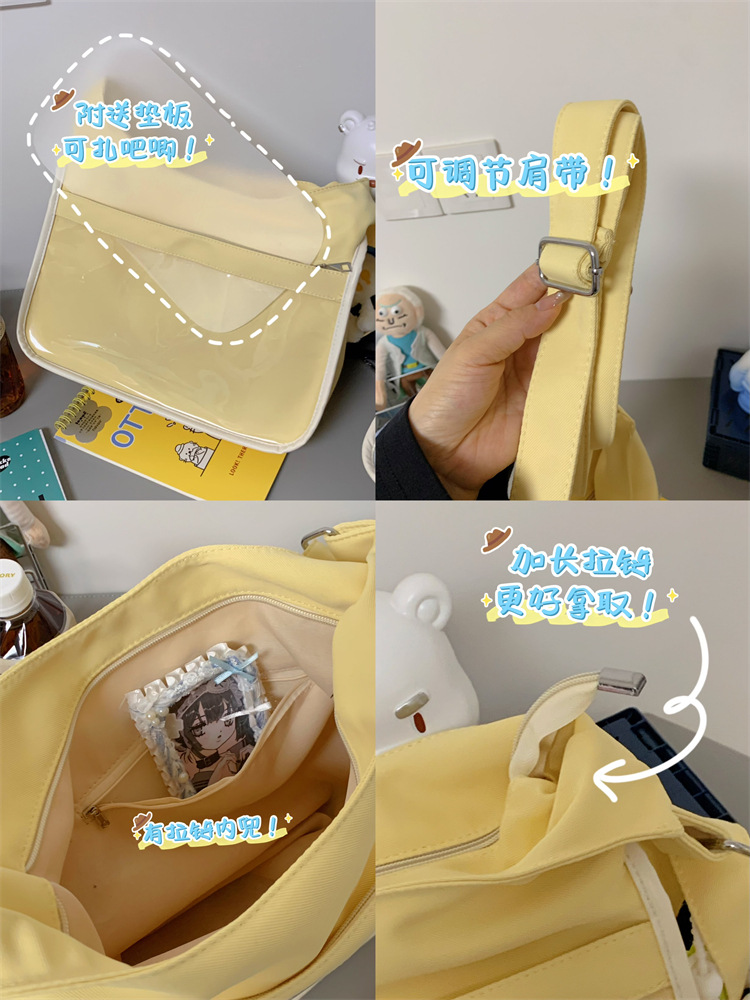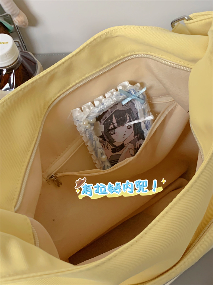 양면 고통스러운 가방 일본식 소녀 크로스 바디 백 학생 클래스 휴대용 대용량 캔버스 숄더 토트 백