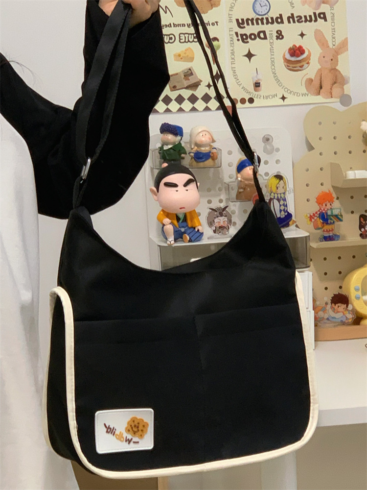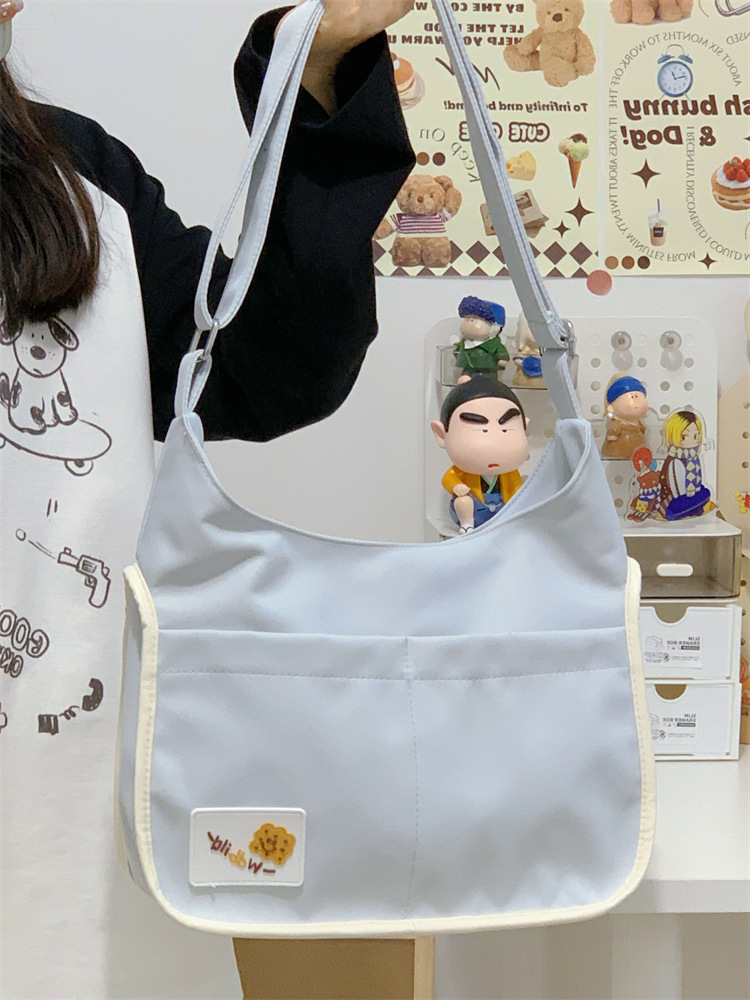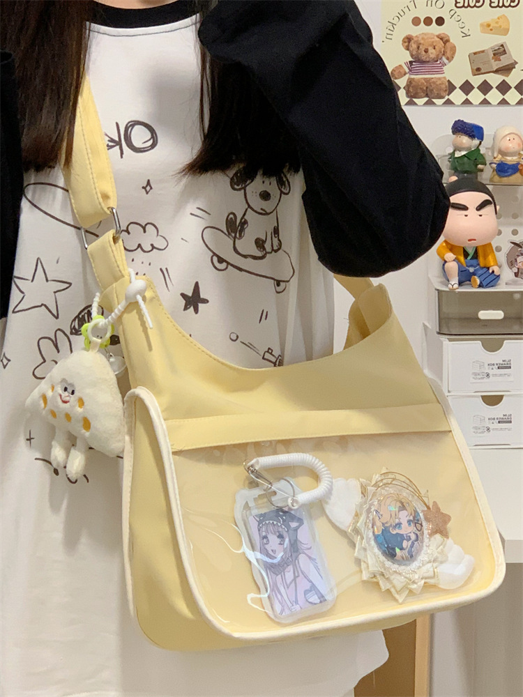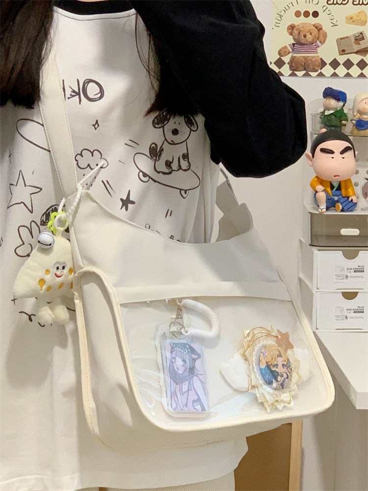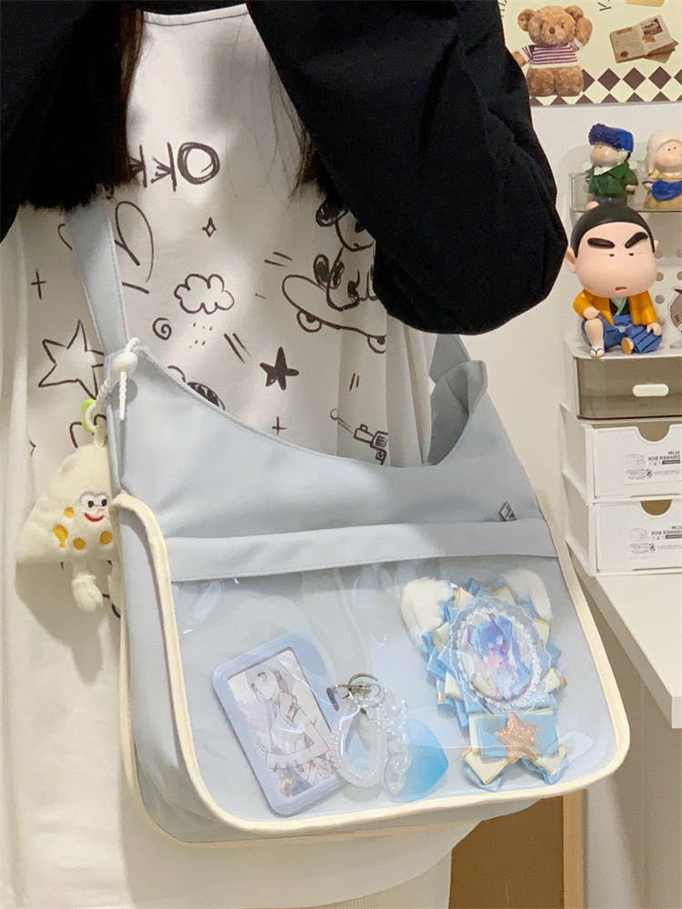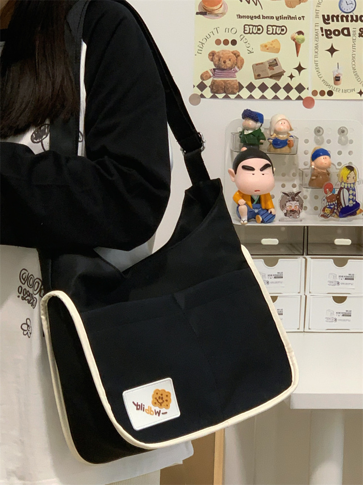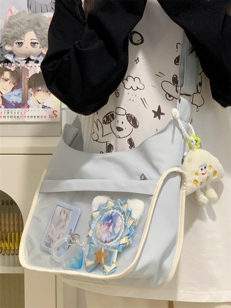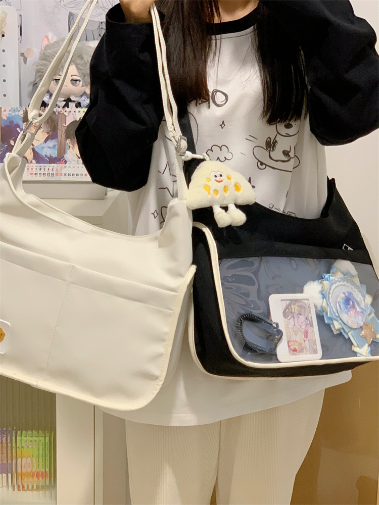 양면 고통스러운 가방 일본식 소녀 크로스 바디 백 학생 클래스 휴대용 대용량 캔버스 숄더 토트 백