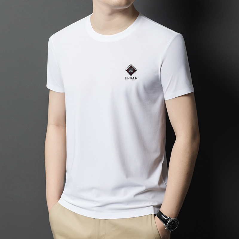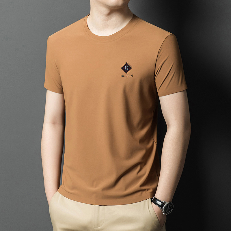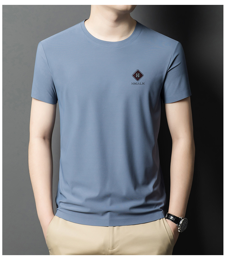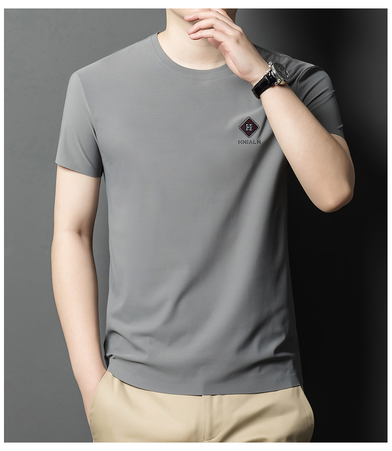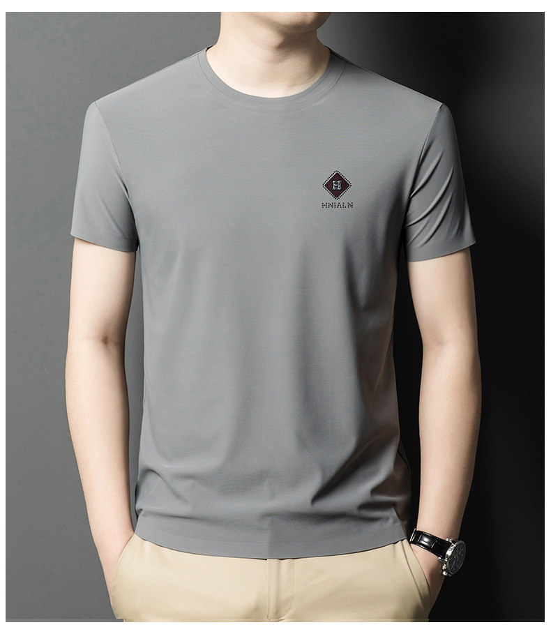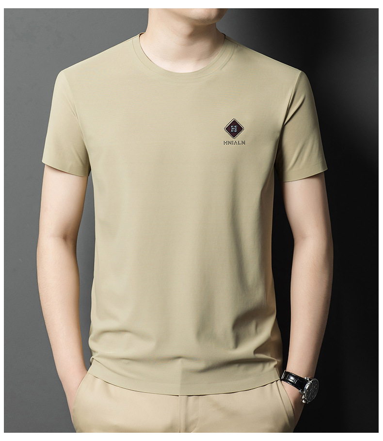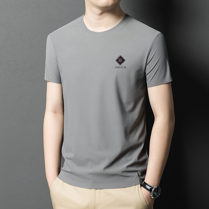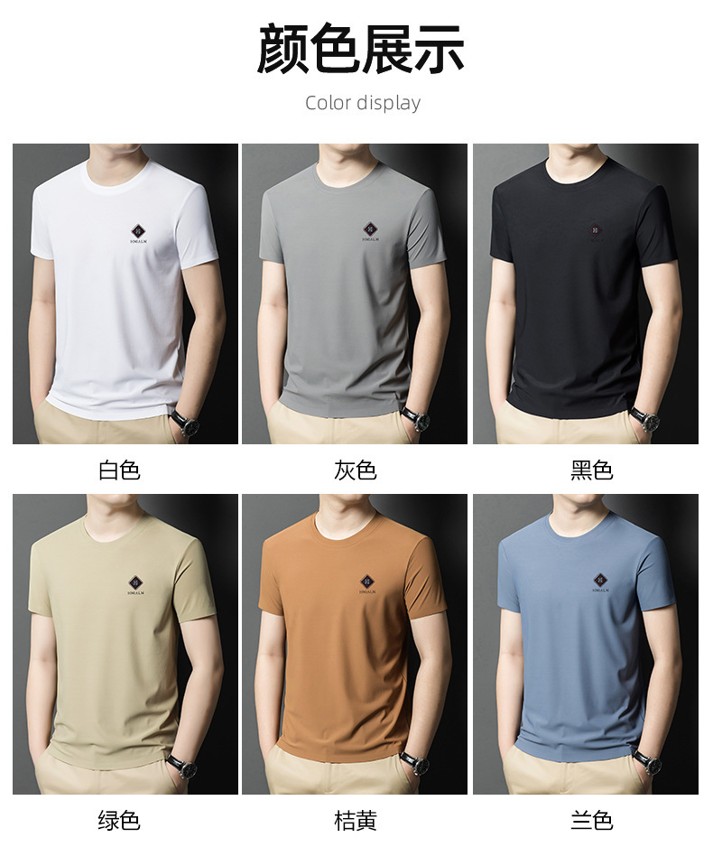 2024 여름 남자의 얇은 통기성 땀 흡수 심플 라운드 넥 반팔 트렌디 브랜드 올 매치 라운드 넥 비즈니스 티셔츠스토어 가기
