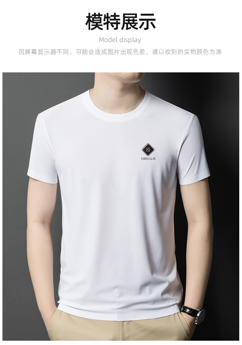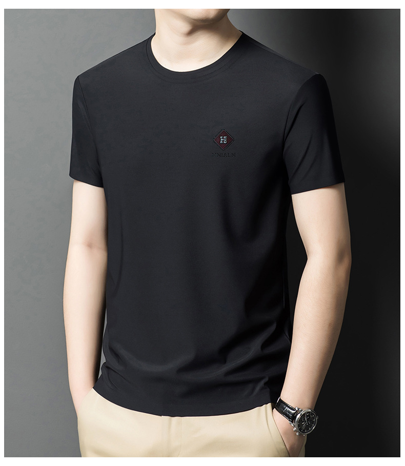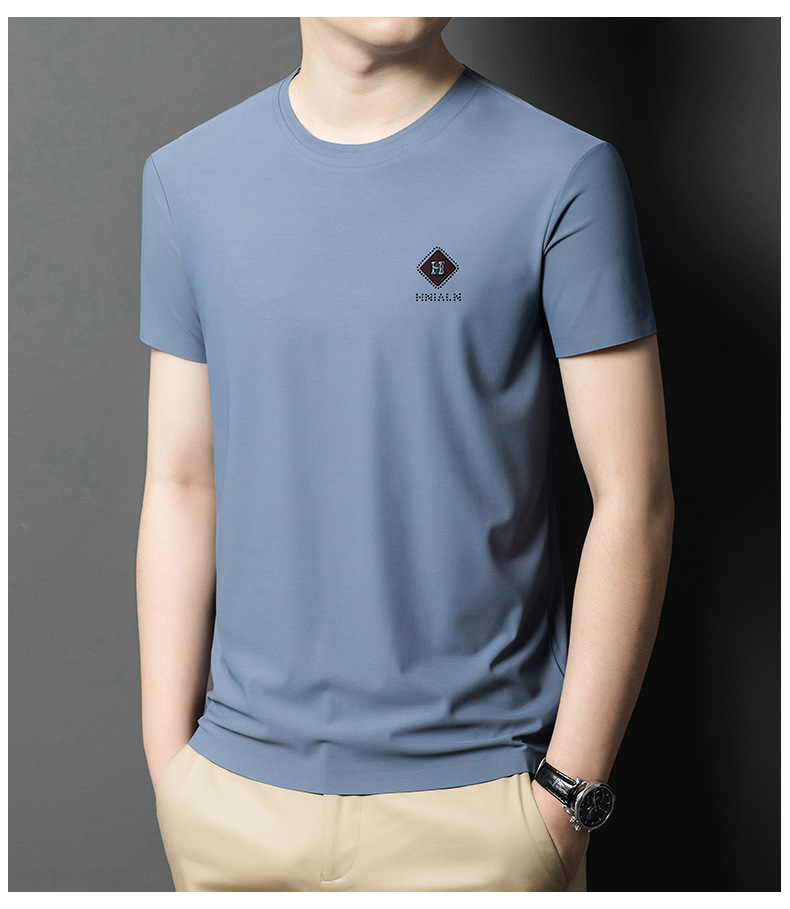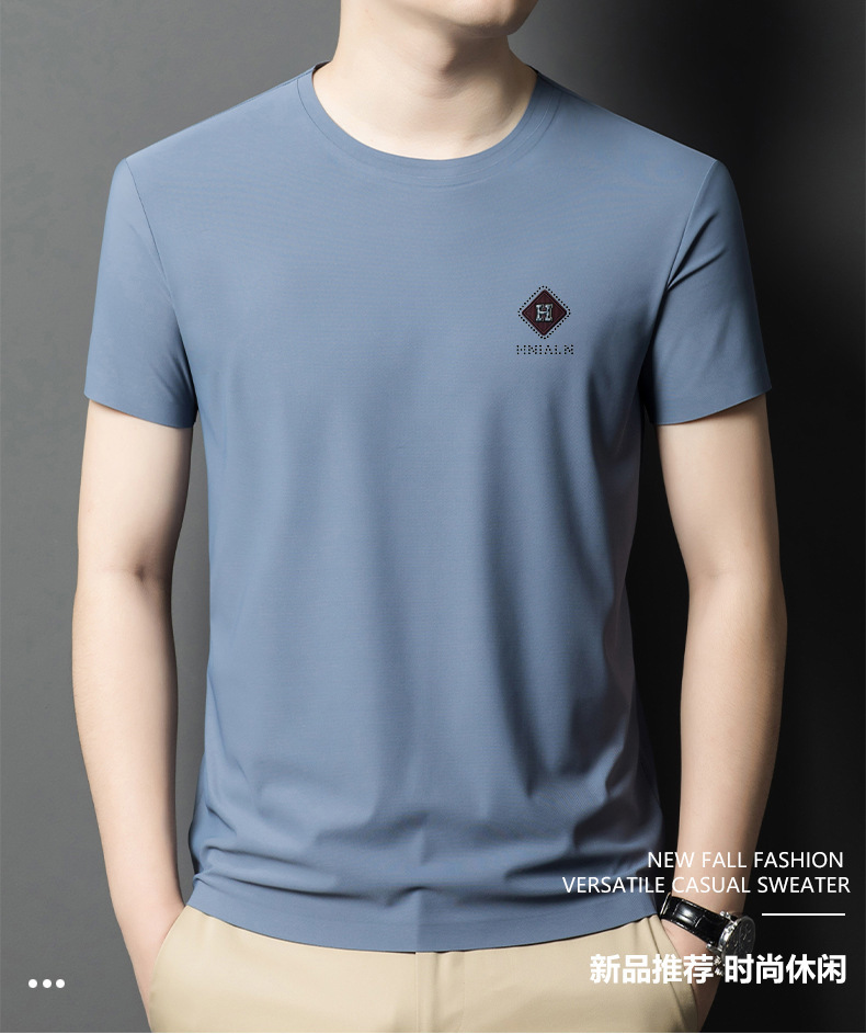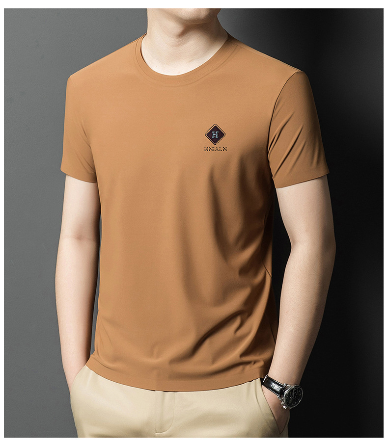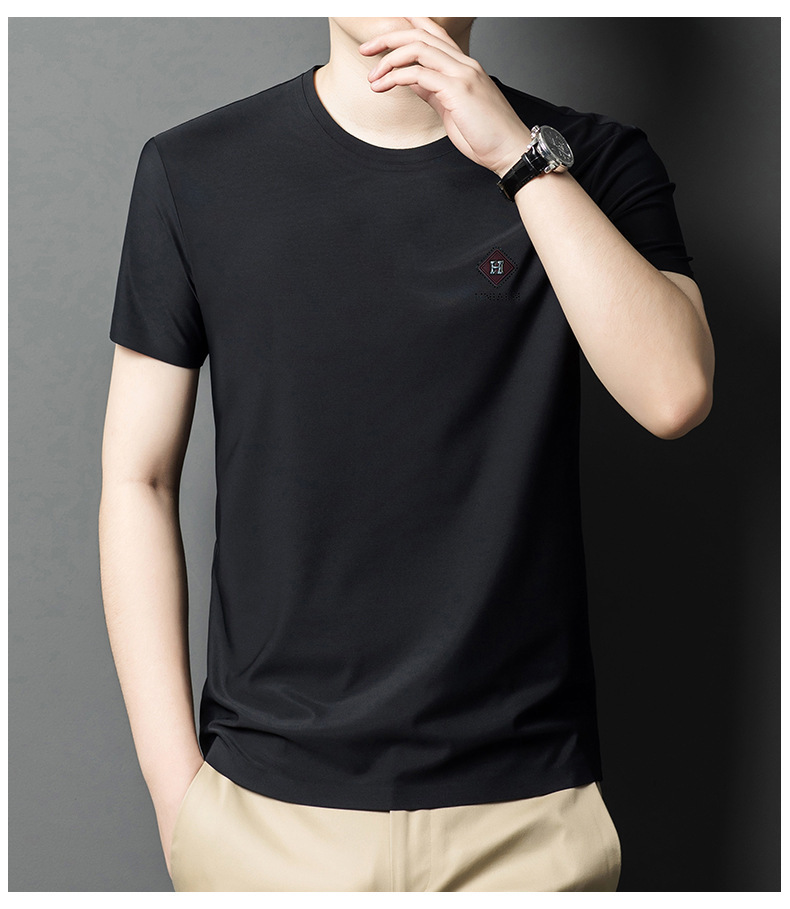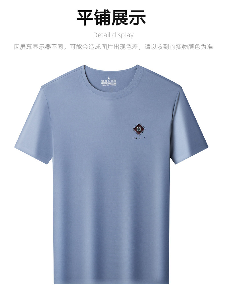 2024 여름 남자의 얇은 통기성 땀 흡수 심플 라운드 넥 반팔 트렌디 브랜드 올 매치 라운드 넥 비즈니스 티셔츠스토어 가기