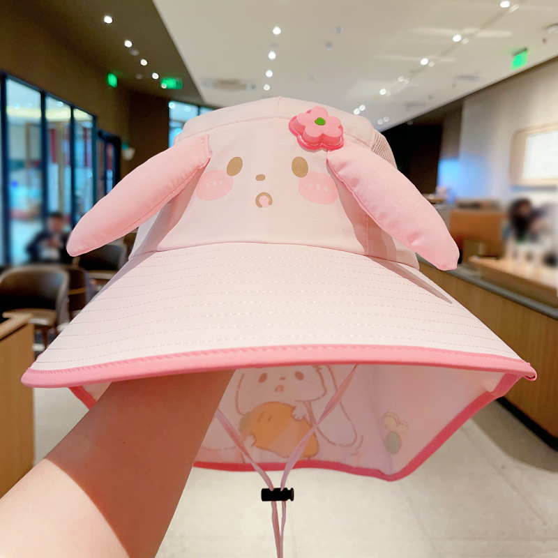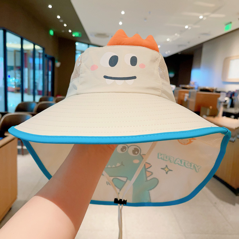 팬 귀여운 올 매치 여행 자외선 차단제 모자 차양 모자 여름 큰 챙이 모자 UV 보호 목도리 모자를 가진 어린이 모자스토어 가기