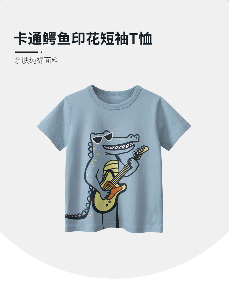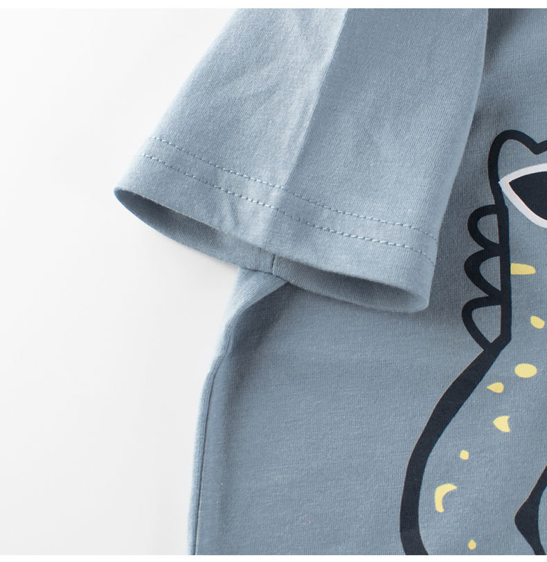 27 아이 여름 어린이 반팔 티셔츠 공룡 만화 한국 어린이 의류 서양식 인쇄 남성 아기 옷 크로스 테두리스토어 가기