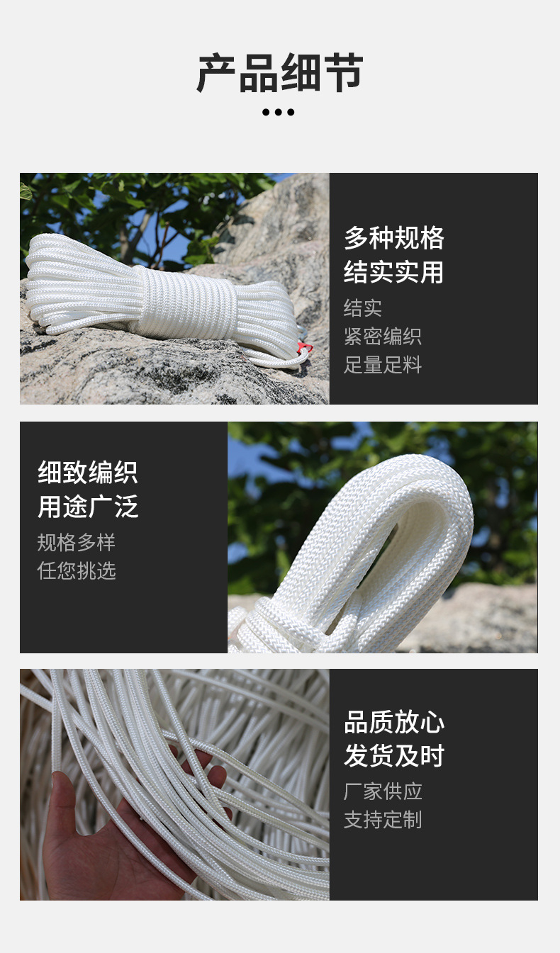 나일론 로프 화이트 코어 짠 로프 내마모성 의류 건조 번들 트럭 서랍 타포린 텐트 로프 안전 로프 로프스토어 가기