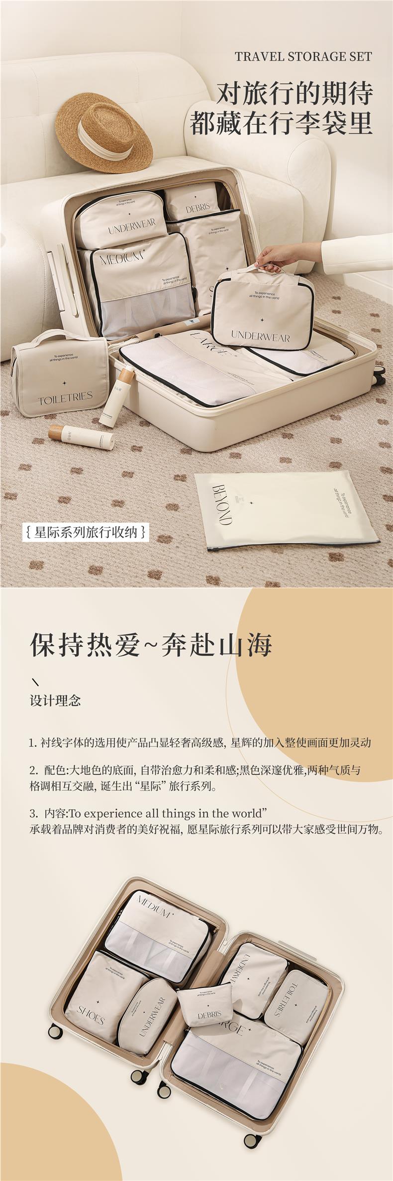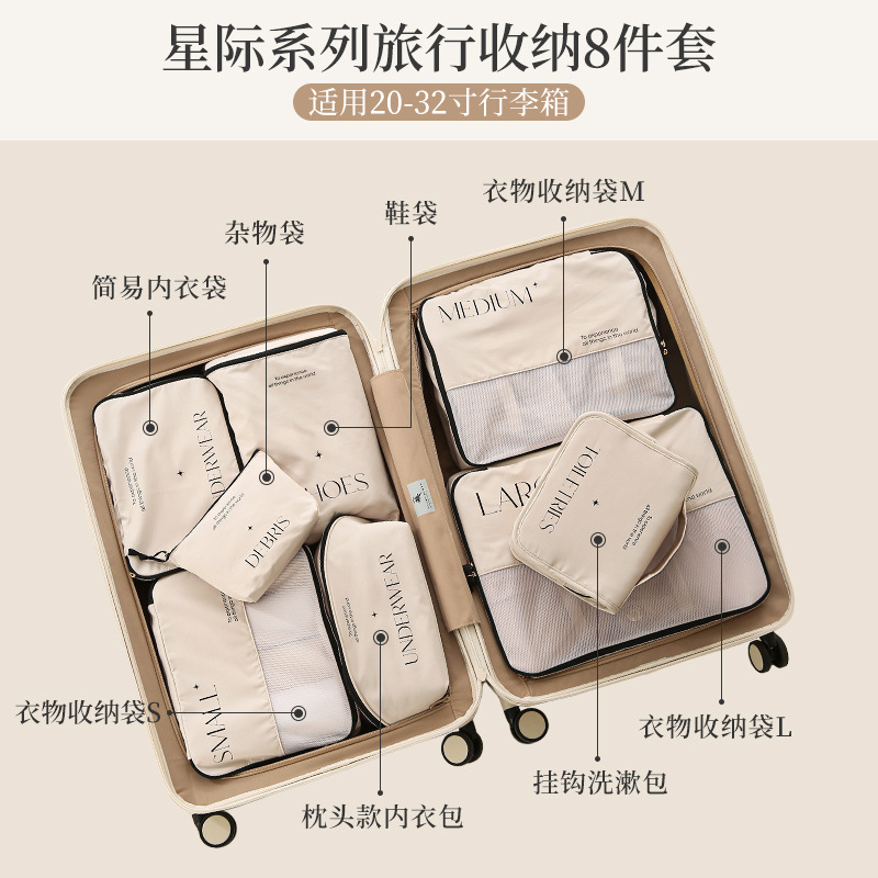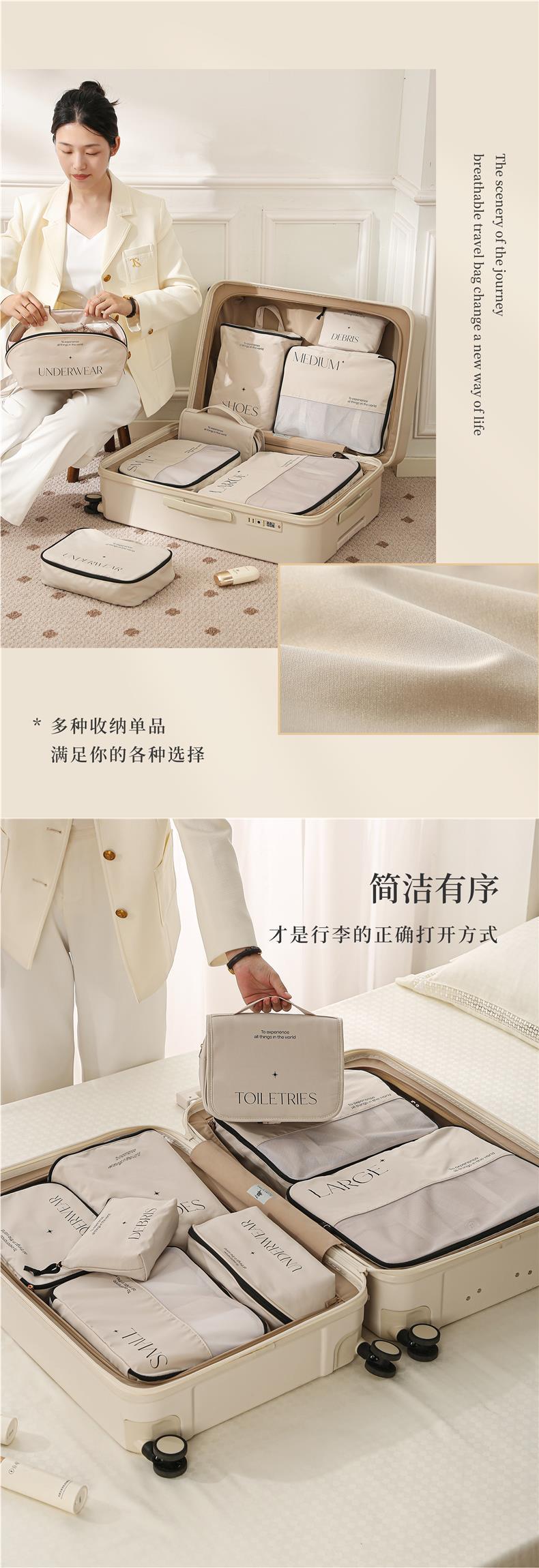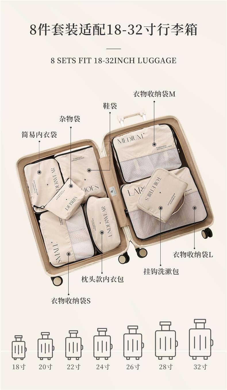Ins 스타일 여행 보관 전체 패키지 의류 분류 가방 twill 8 피스 수하물 암호 상자 보관 가방