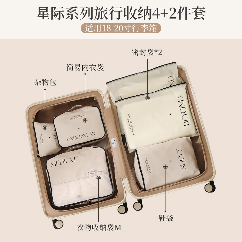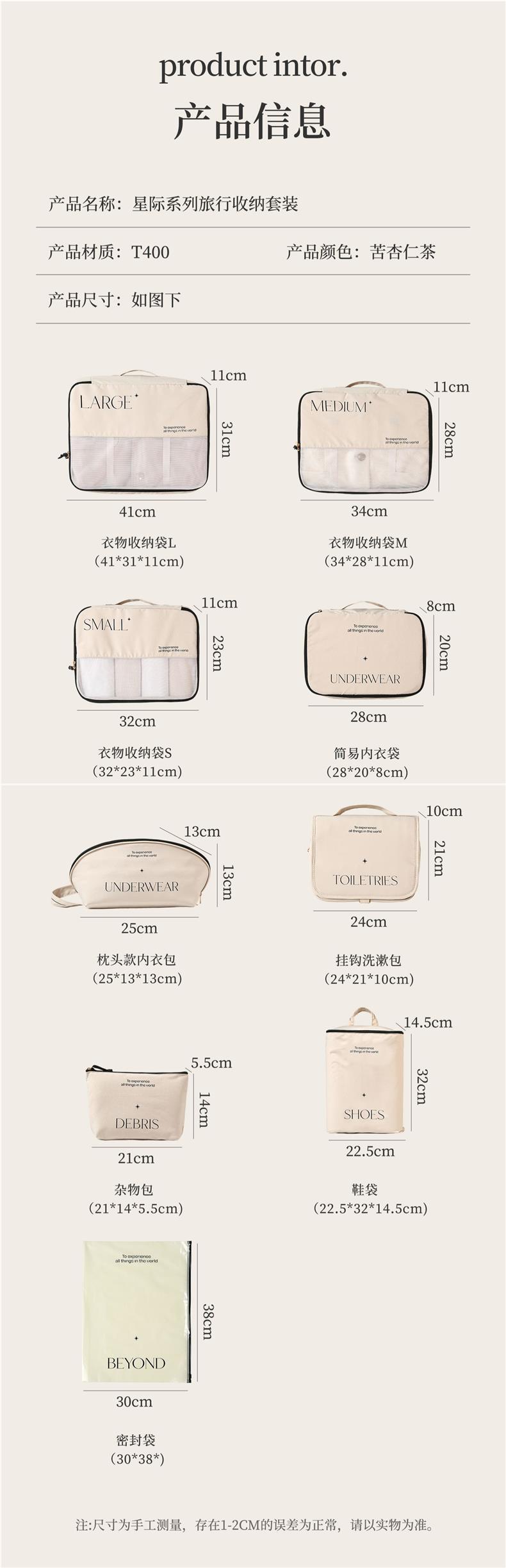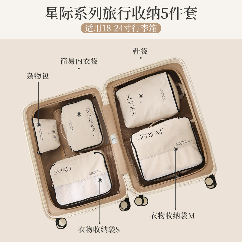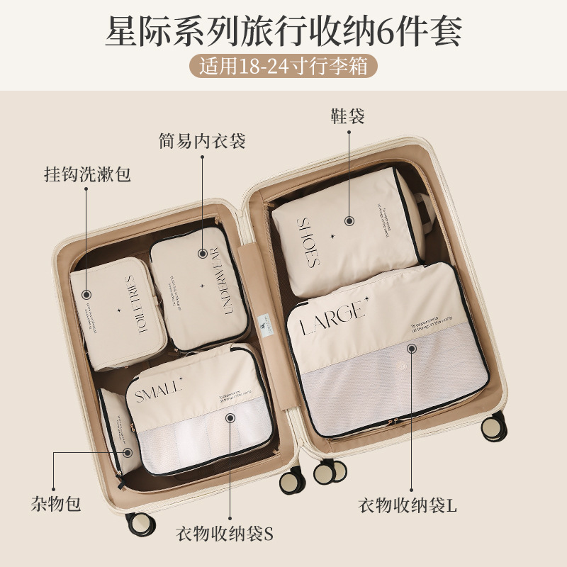 Ins 스타일 여행 보관 전체 패키지 의류 분류 가방 twill 8 피스 수하물 암호 상자 보관 가방