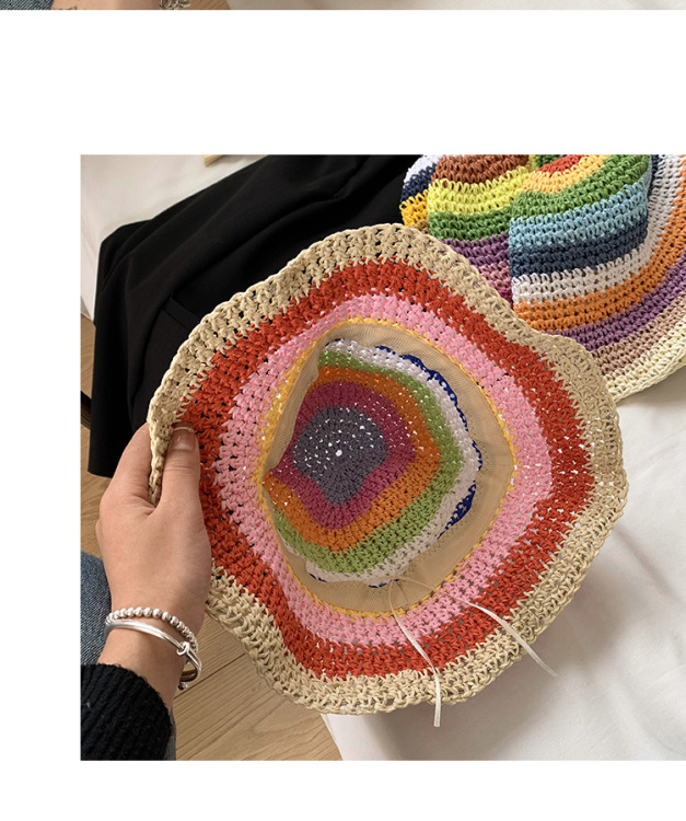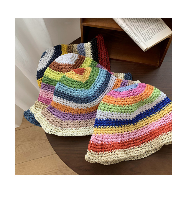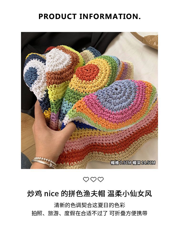 밀짚 모자 여성 현현 스타일 레인보우 밀짚 어부 모자 여성 여름 통기성 햇빛 선 스크린 버킷 모자 한국 스타일 작은 얼굴스토어 가기