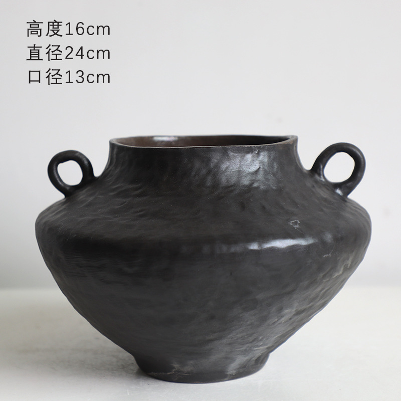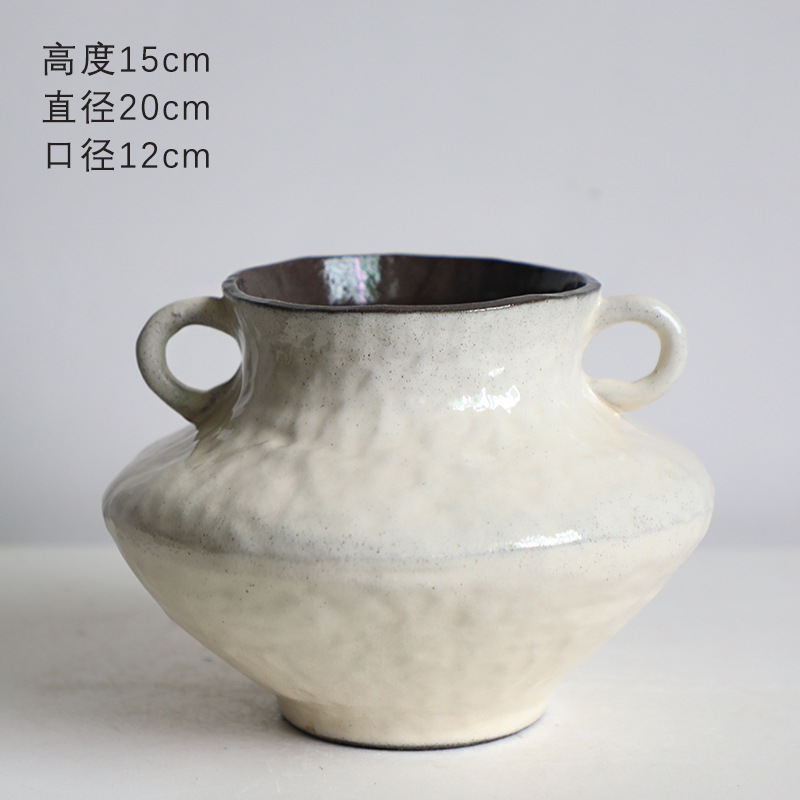화장품 지구 세라믹 꽃병 장식 거실 꽃-새로운 중국 스타일 조용한 스타일 식사 테이블 작은 꽃 빈 레트로 거친 도자기 냄비