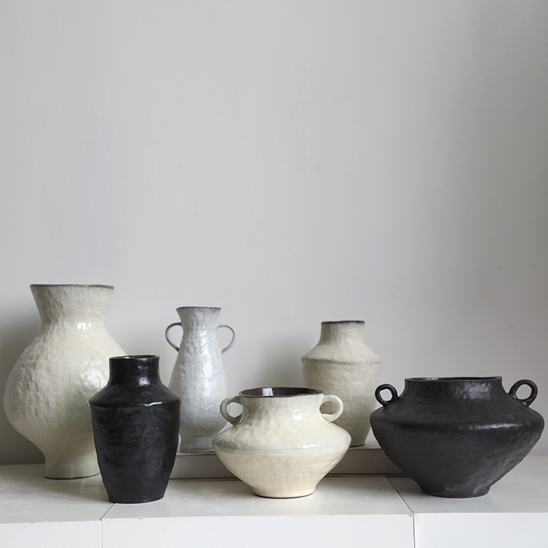 화장품 지구 세라믹 꽃병 장식 거실 꽃-새로운 중국 스타일 조용한 스타일 식사 테이블 작은 꽃 빈 레트로 거친 도자기 냄비스토어 가기