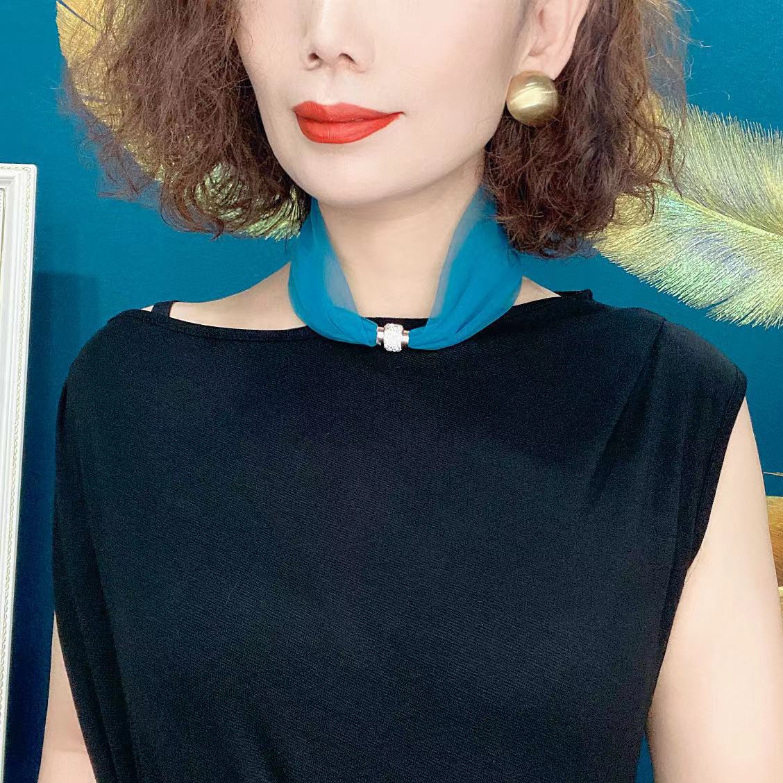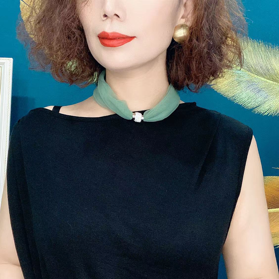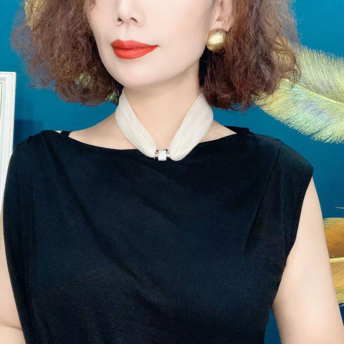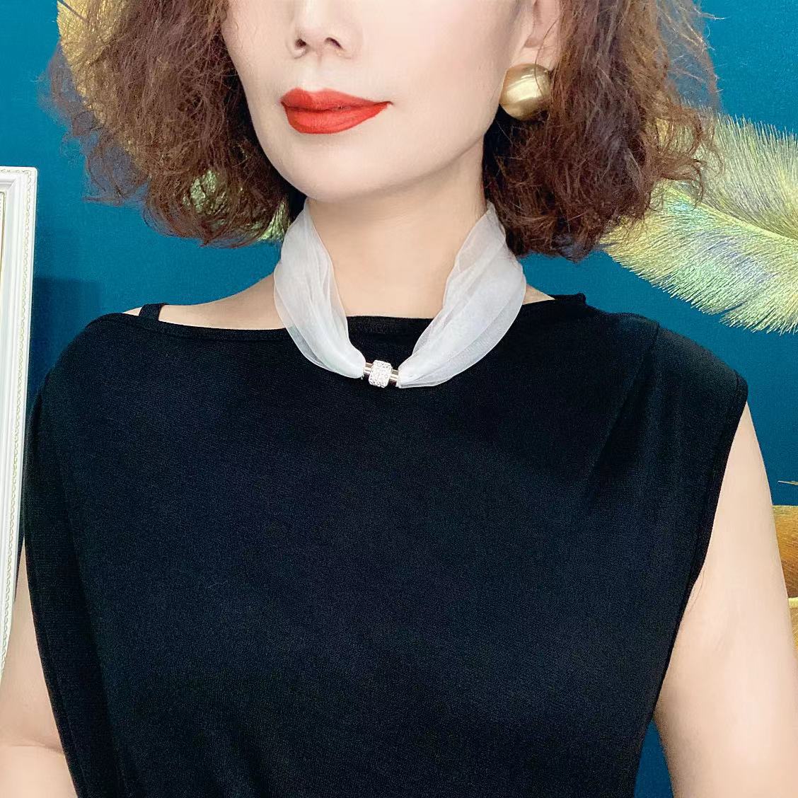 여름 올 매치 얇은 메쉬 거짓 칼라 다이아몬드 버클 선스크린 스카프 목 보호 목 커버 리본 스카프 솔리드 컬러 목 보호 수건