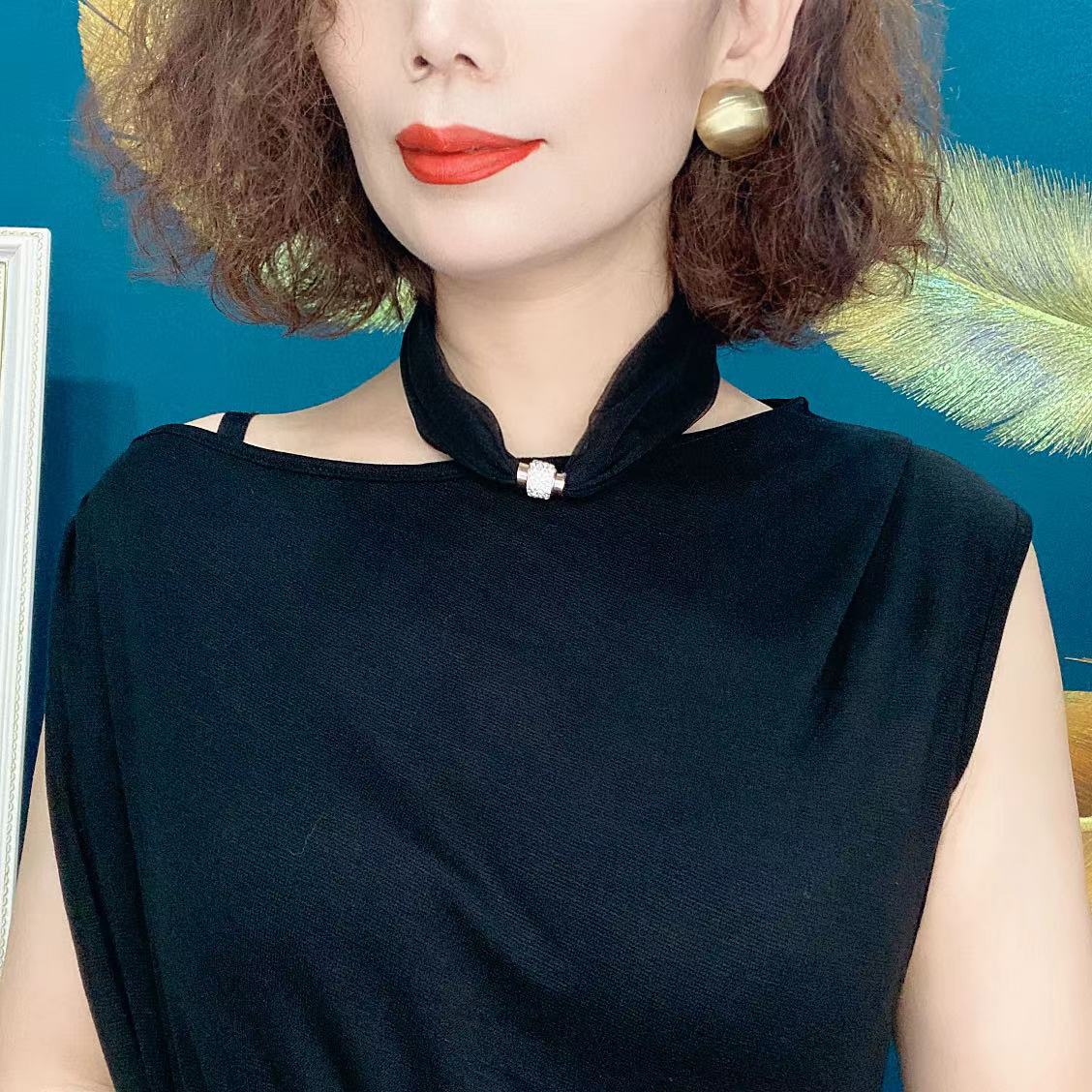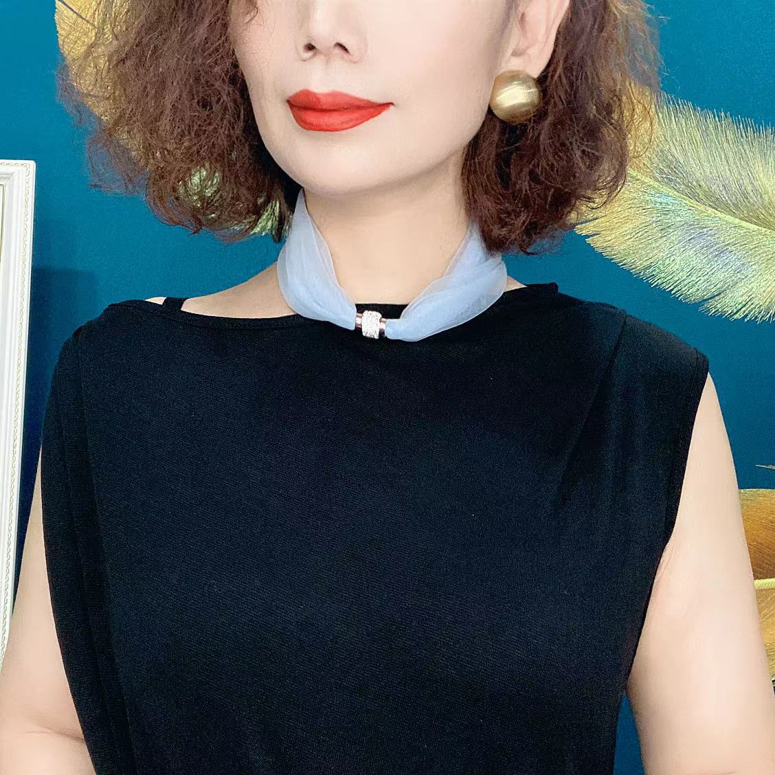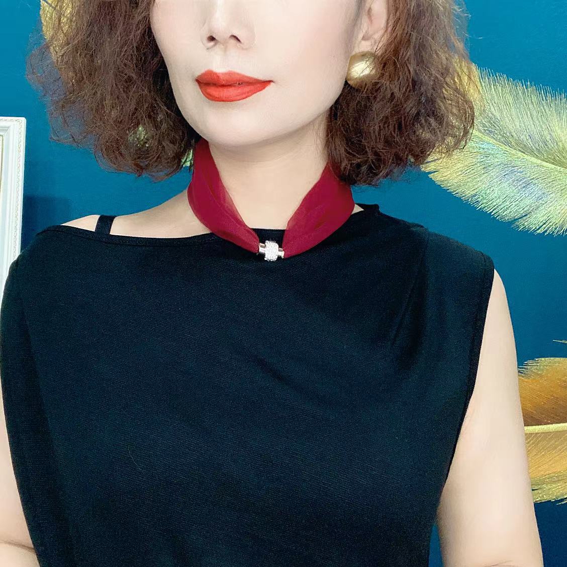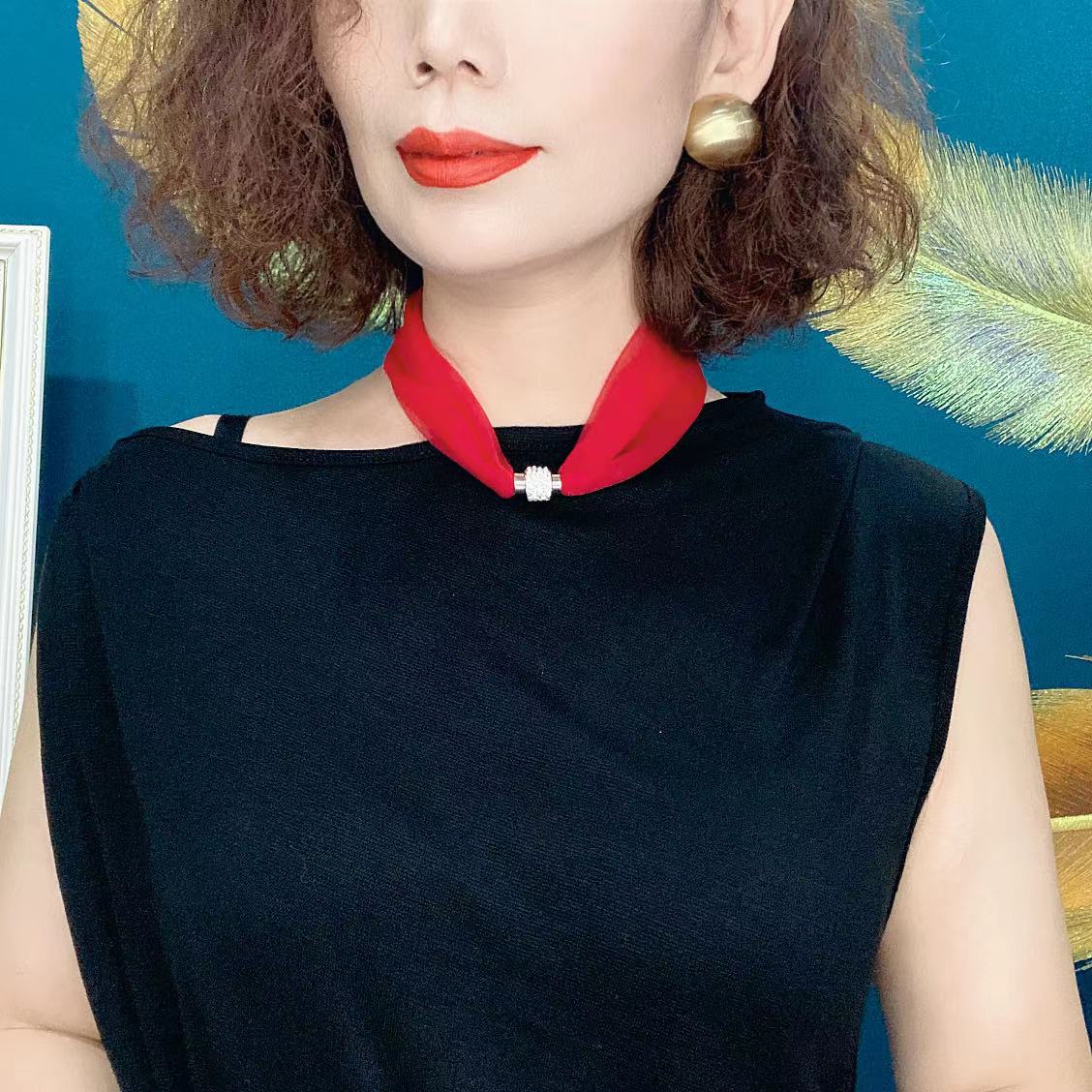 여름 올 매치 얇은 메쉬 거짓 칼라 다이아몬드 버클 선스크린 스카프 목 보호 목 커버 리본 스카프 솔리드 컬러 목 보호 수건