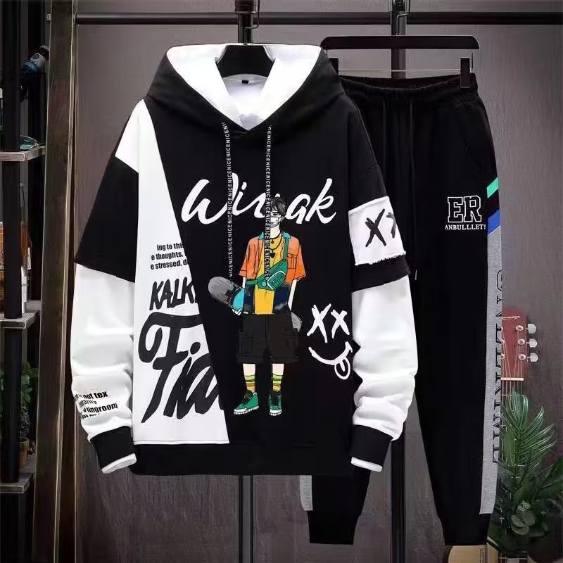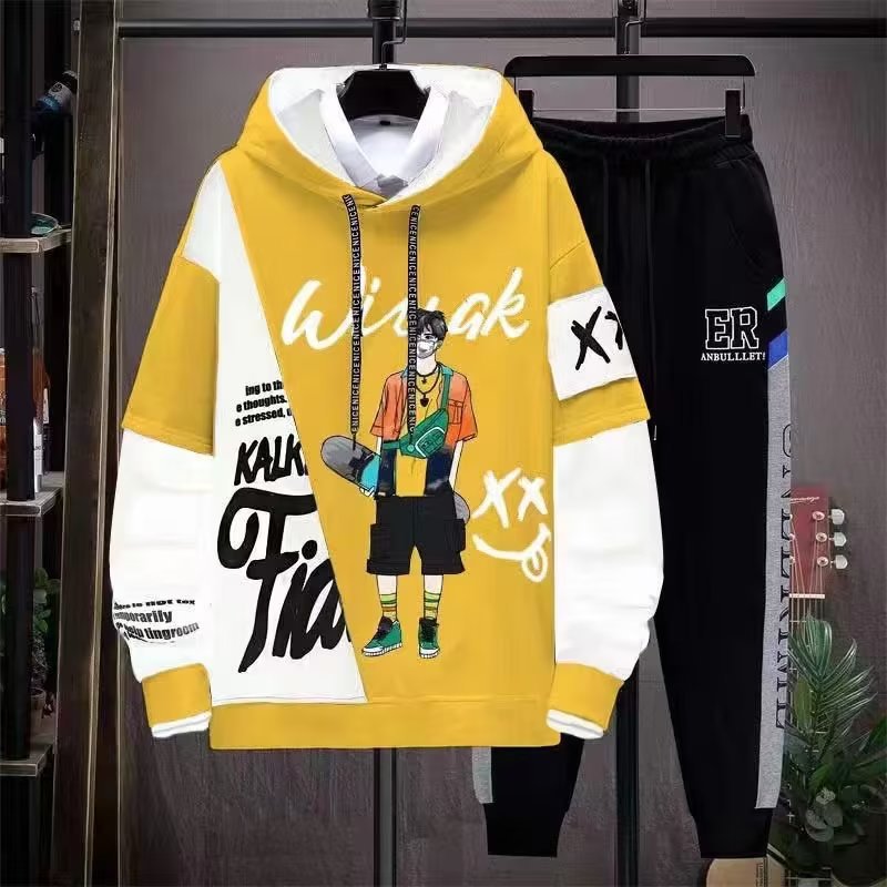 가을 소년 세트 한국 패션 학생 레저 스포츠 스웨터 탑 캐주얼 바지 투피스 의상