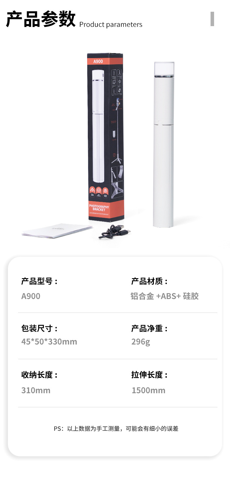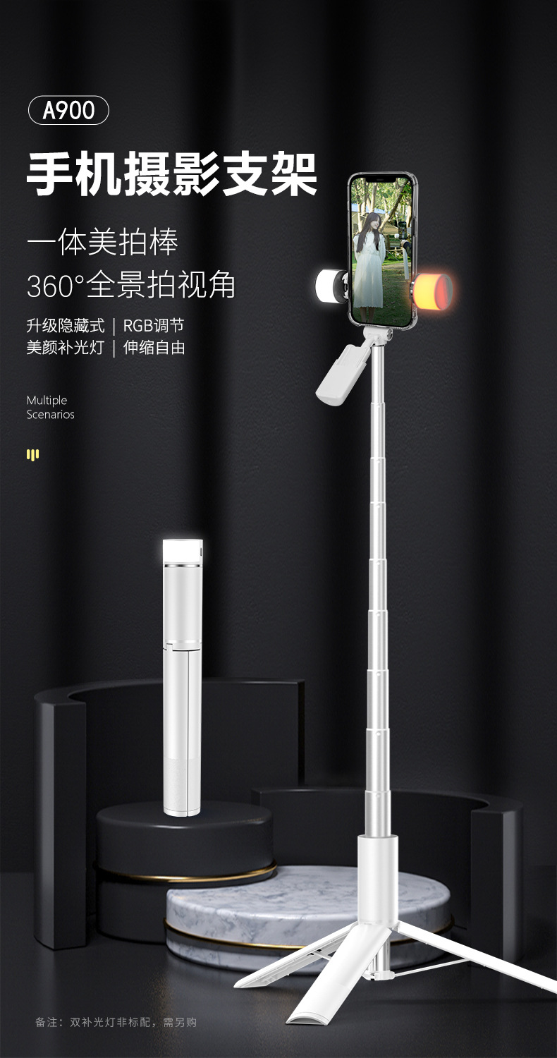 쌓인 A900 블루투스 셀카 스틱 라이브 라이트 충전 가벼운 데스크탑 층 통합 삼각대 휴대 전화 슈팅 브래킷