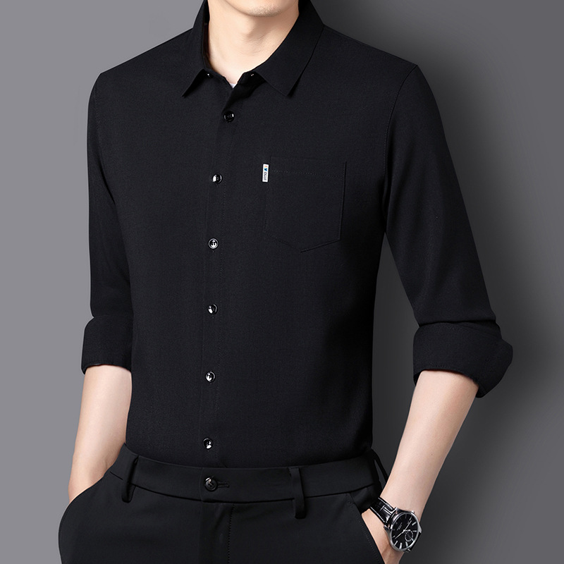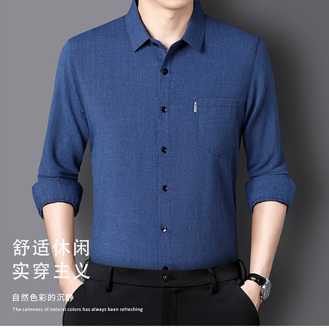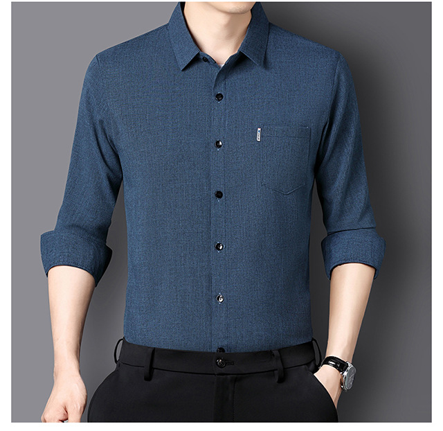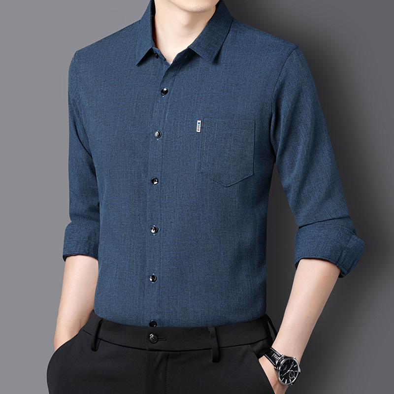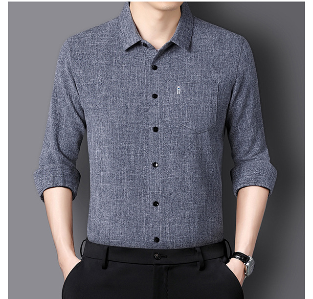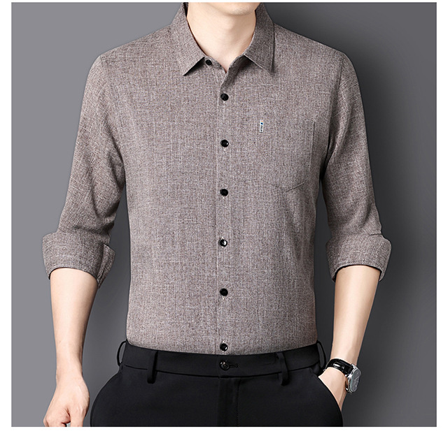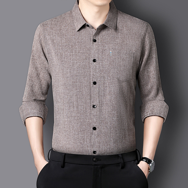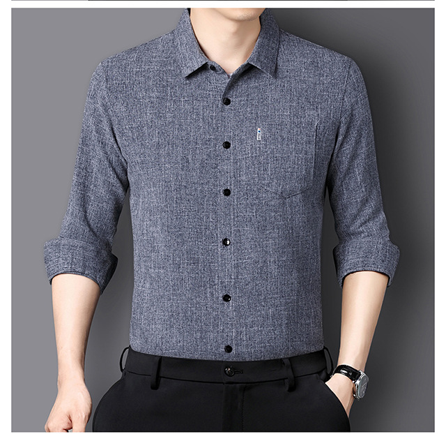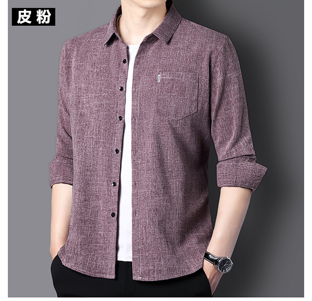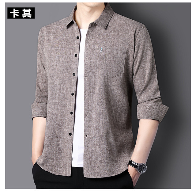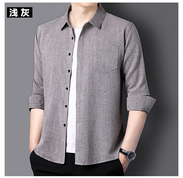 남성용 코튼 리넨 긴팔 셔츠 다림질 옷깃 아빠의 최고 셔츠 올매치 탄성 피부 친화적 인 캐주얼 비 필링