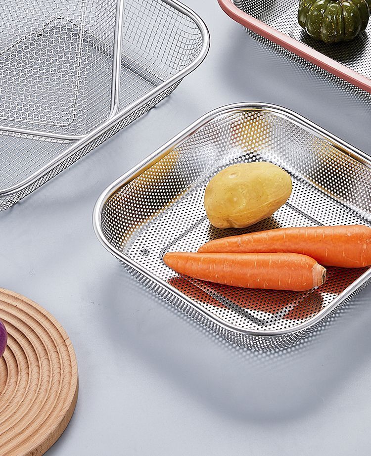 스테인리스 광장 바구니 숟가락 젓가락 바구니 식기 야채 및 과일 배수 바구니 가정용 주방 배수 케이지 야채 세척 과일 바구니스토어 가기
