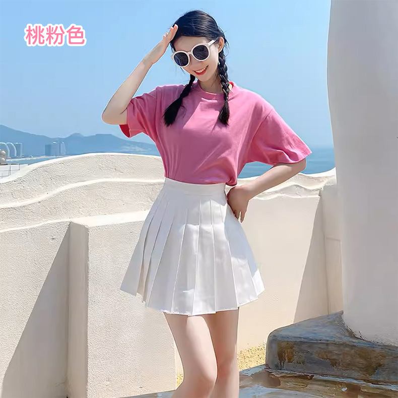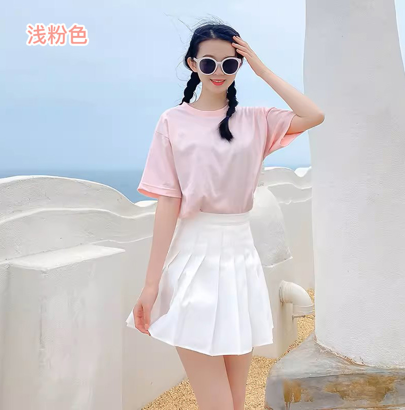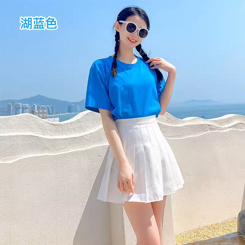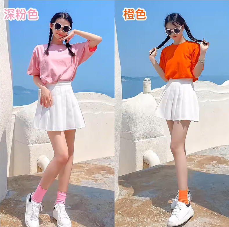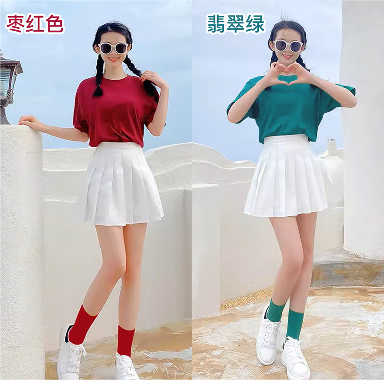 캔디 컬러 티셔츠 주름 치마 세트 의상 여성 컬러 180g 새로운 도파민 신부 들러리 그룹 여자 친구 클래스 의류
