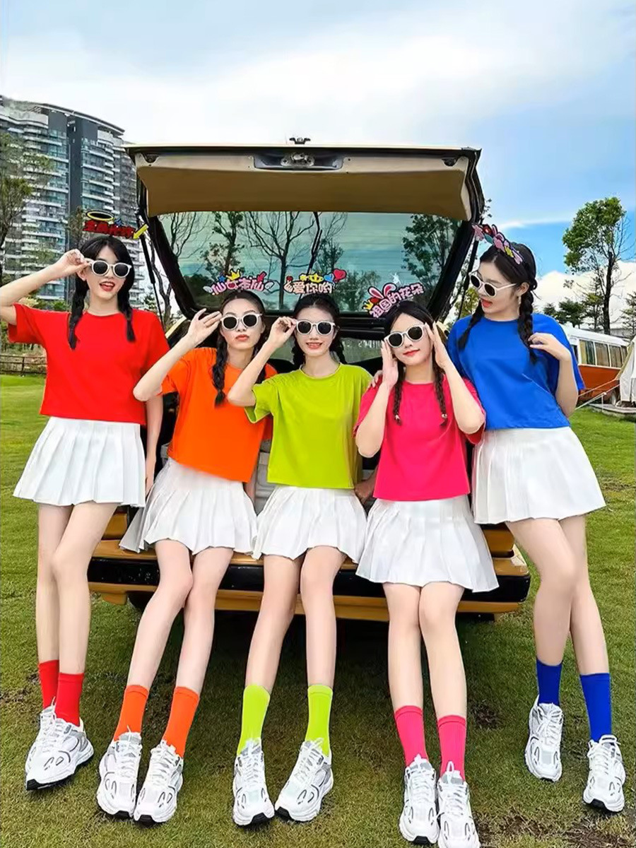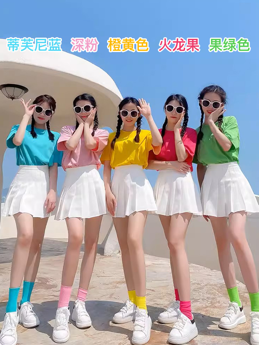 캔디 컬러 티셔츠 주름 치마 세트 의상 여성 컬러 180g 새로운 도파민 신부 들러리 그룹 여자 친구 클래스 의류스토어 가기