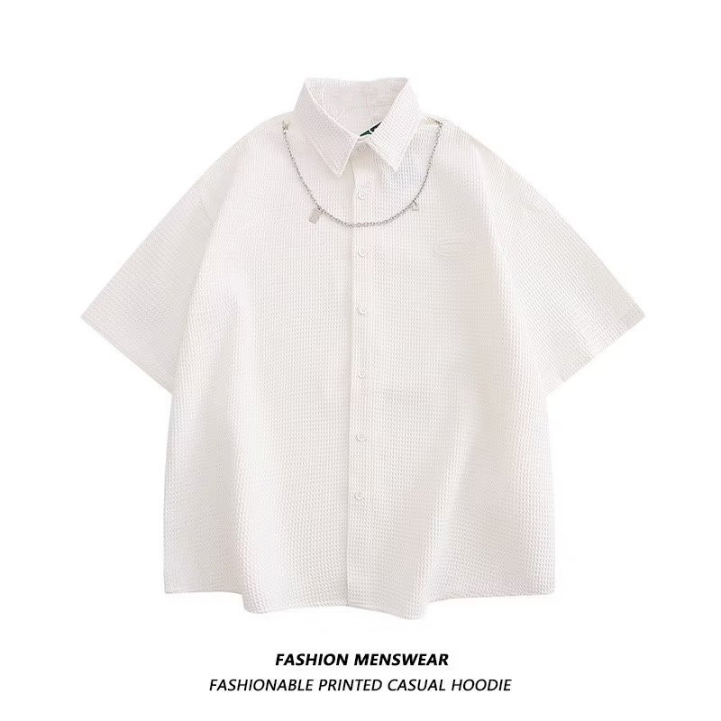 일본식 와플 반팔 셔츠 남자 올매치 느슨한 청소년 탑 여름 유행 브랜드 캐주얼 반소매 셔츠스토어 가기