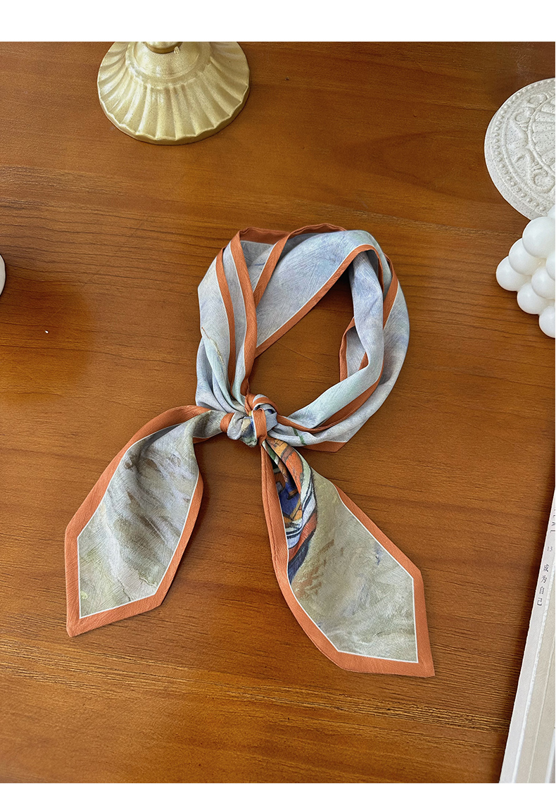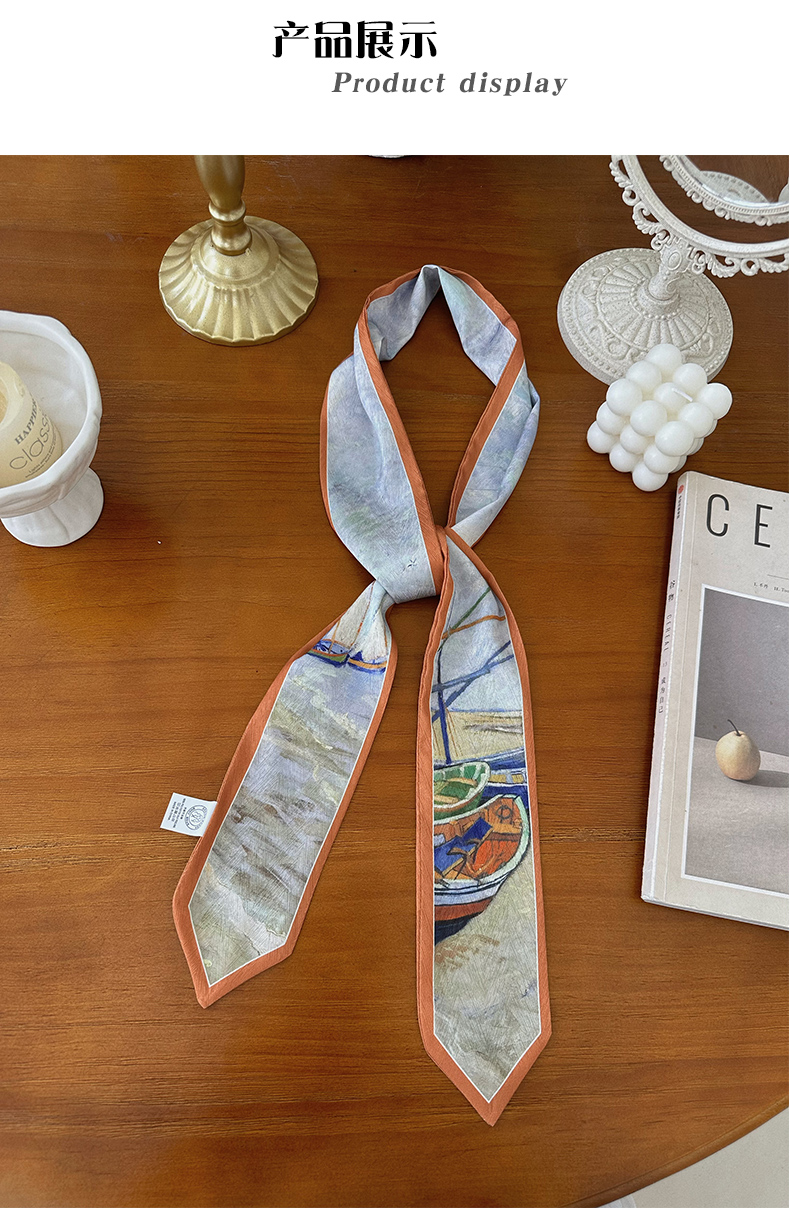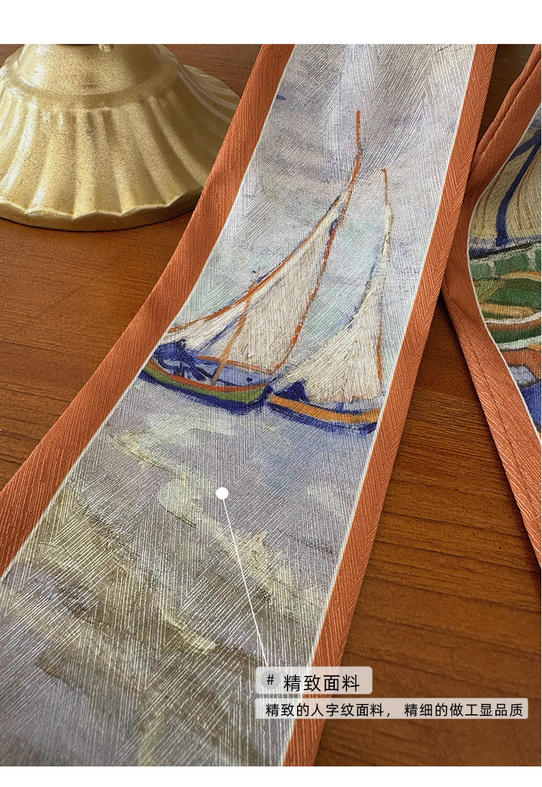 오렌지 그레이 낚시 포트 작은 항해 유화 리본 양면 실크 스카프 장식 헤어 벨트 스카프 넥타이 가방 리본 얇은 좁은 스카프