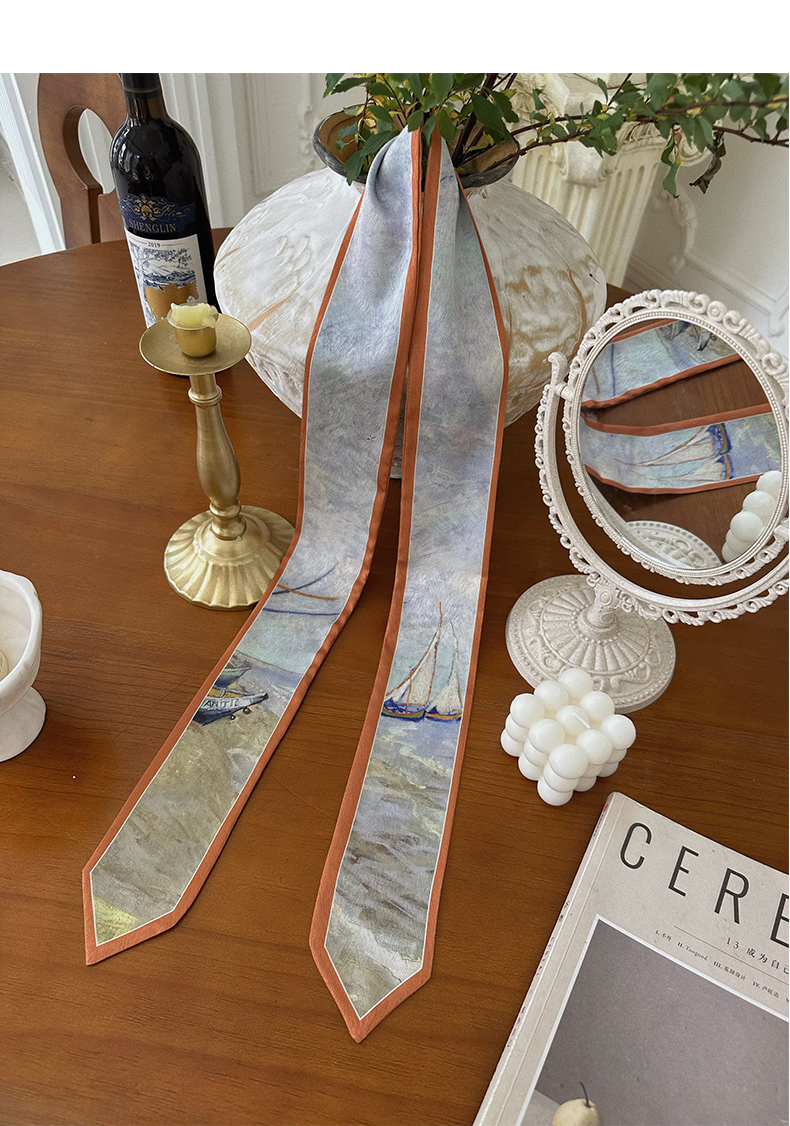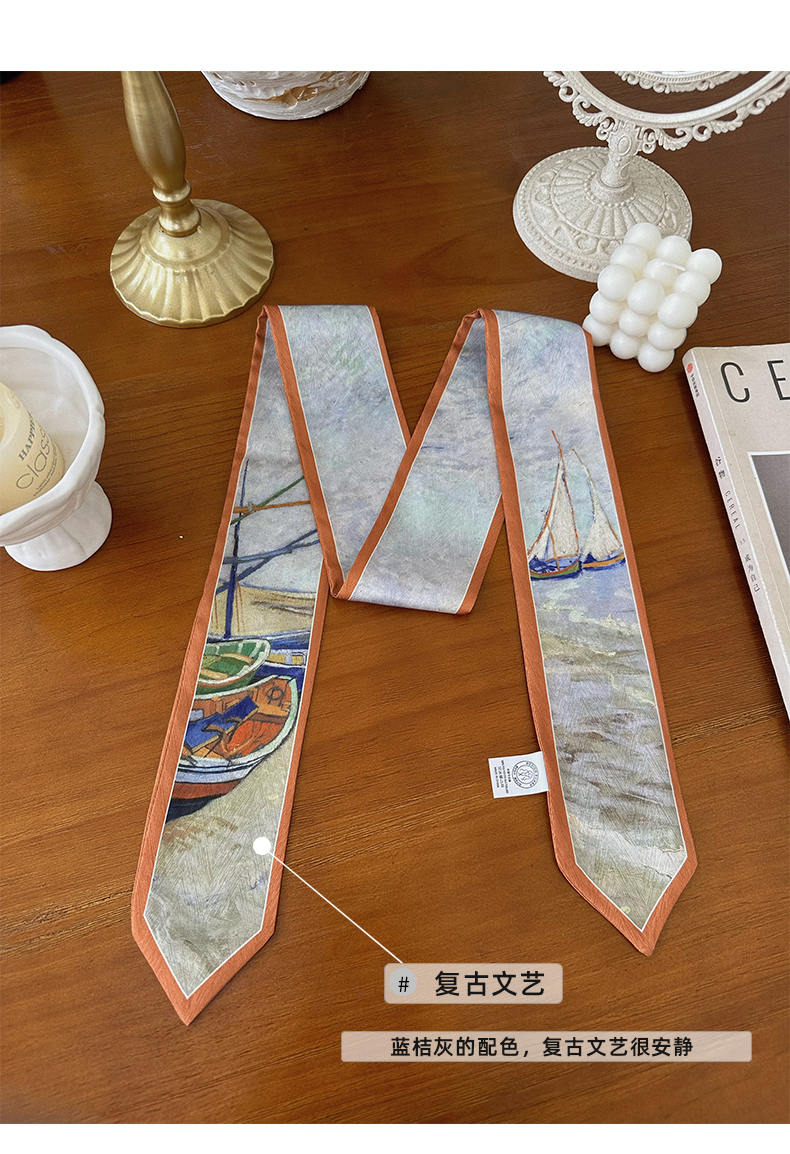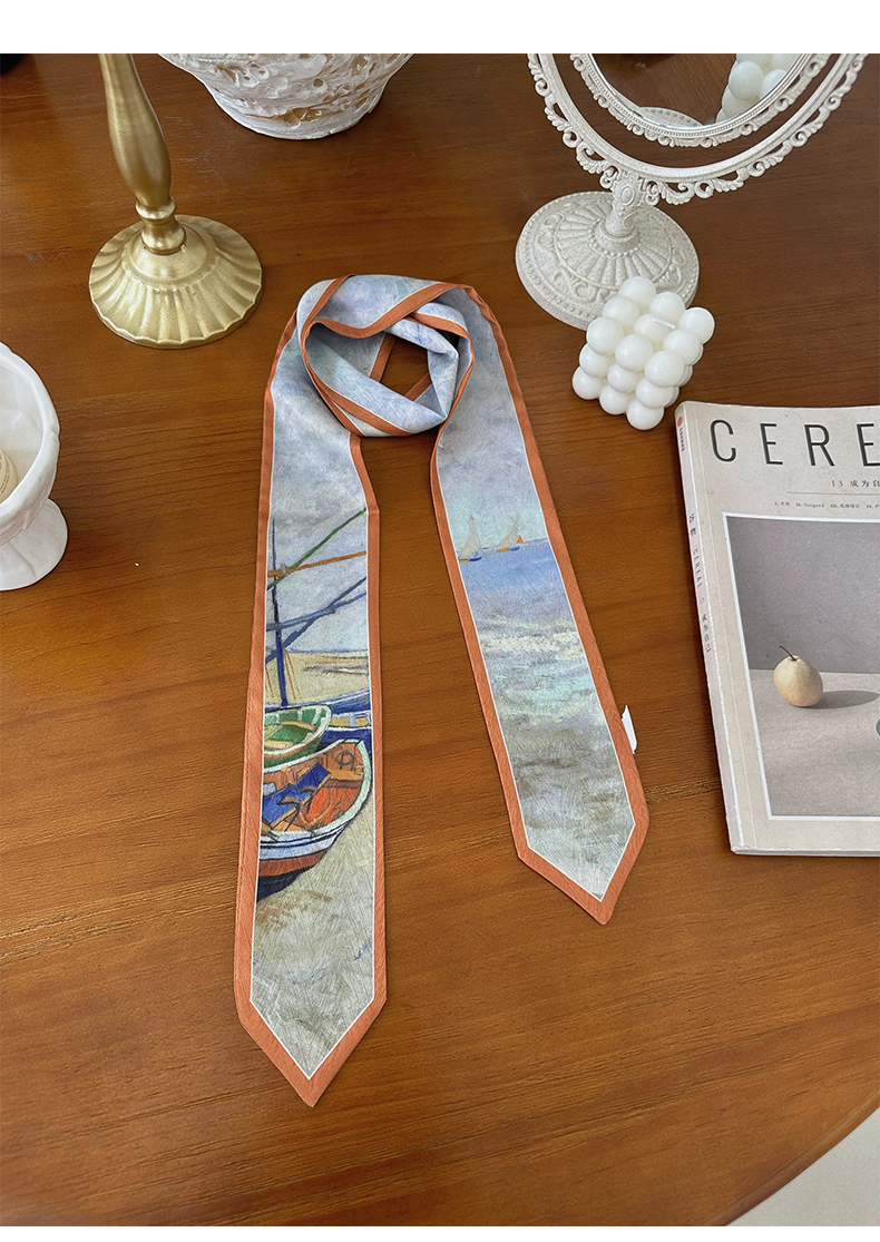 오렌지 그레이 낚시 포트 작은 항해 유화 리본 양면 실크 스카프 장식 헤어 벨트 스카프 넥타이 가방 리본 얇은 좁은 스카프스토어 가기